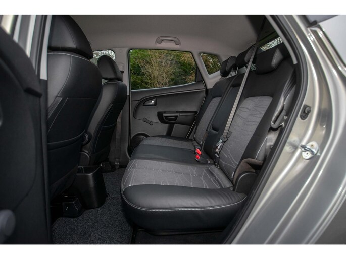 De carrosserie schittert dankzij de grijze metallic lak, compleet met bumpers in carrosseriekleur en stijlvolle 16-inch lichtmetalen velgen. Het extra getinte glas zorgt voor privacy en de elektrisch verstelbare en verwarmbare buitenspiegels in carrosseriekleur maken het design af. Binnenin vind je een fris interieur met halfleren bekleding, een multifunctioneel stuur en comfortabele stoelen voor bestuurder en passagier. De achterbank is in delen neerklapbaar, zodat je eenvoudig extra laadruimte creëert voor weekendjes weg of boodschappen.