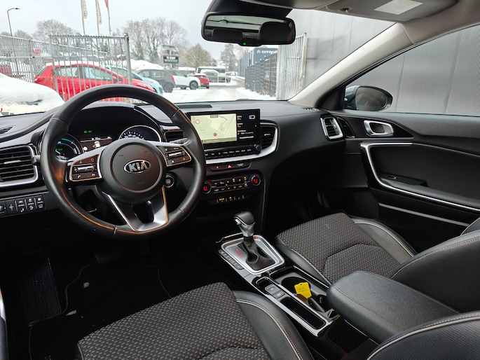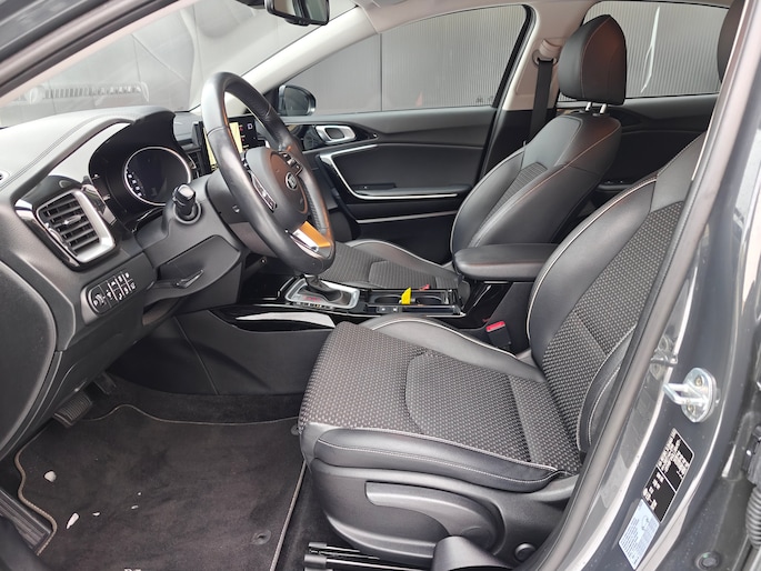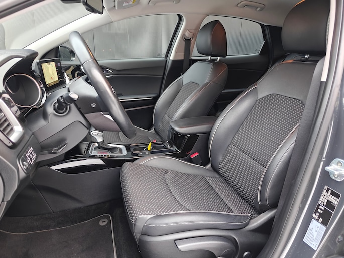 Hij zorgt voor een ontspannen rijervaring, deze Kia XCeed. Het is een auto uit 2024. Het beste van twee werelden komt samen in de hybride motor. Daarmee wordt deze Kia XCeed aangedreven door zowel brandstof als door de elektrische accu, die al rijdend of remmend wordt bijgeladen. Van binnen lijkt het allemaal uitermate ruim dankzij de vrije inval van daglicht via het elektrisch bediende glazen panorama dak. Comfort en luxe? Dat krijgt u door het lederen interieur. En optimaal gemak is er in de vorm van de elektrisch bedienbare achterklep. Hoe koud het buiten ook is, het verwarmbare stuurwiel en de verwarmbare voorstoelen brengen uw handen, vingers en lichaam snel weer op temperatuur. Bij de uitrusting van deze Kia horen onder meer 18 inch lichtmetalen velgen, LED koplampen, extra getint glas, in delen neerklapbare achterbank, LED-achterlichten en verstelbare lendensteunen. U wordt geïntroduceerd tot de digitale wereld van mobiliteit waarop alles wat u wenst wordt geprojecteerd op het digitale dashboard. Altijd achter zicht, nooit meer nekkramp! De achteruitrijcamera maakt het supermakkelijk. Adaptive cruise control houdt de ingestelde snelheid vast en houdt automatisch afstand tot uw voorligger. Onder alle omstandigheden een volmaakt geluid onderweg: het high performance audiosysteem zorgt ervoor. Extra makkelijk is de draadloze telefoonlader. De uitrusting van deze Kia is met dashboard met spraakbediening, full map navigatiesysteem, automatische airconditioning, DAB ontvangst, regensensor en keyless entry behoorlijk compleet. Het rijden met deze Kia wordt nog meer ontspannen dankzij de innovatieve technieken die onderweg over uw veiligheid waken. De actuele snelheidslimiet, een inhaalverbod en andere verkeersborden; de verkeersborddetectie ondersteunt u tijdens elke rit. Deze Kia XCeed is ook behulpzaam als het gaat om een rechte koers. Het Lane-keeping systeem signaleert en corrigeert als u onbedoeld de rijstrooklijnen dreigt te overschrijden. Vermoeid achter het stuur zitten vergroot de kans op een ongeval. Vermoeidheidsherkenning waarschuwt tijdig als u aan een rustpauze toe bent. Verder is deze auto uitgerust met dodehoekdetectie, hill hold functie, autonoom remsysteem en bandenspanningcontrolesysteem. Laat het ons meteen weten als u interesse heeft in deze Kia, dan kunnen we een afspraak maken om u de auto te demonstreren.