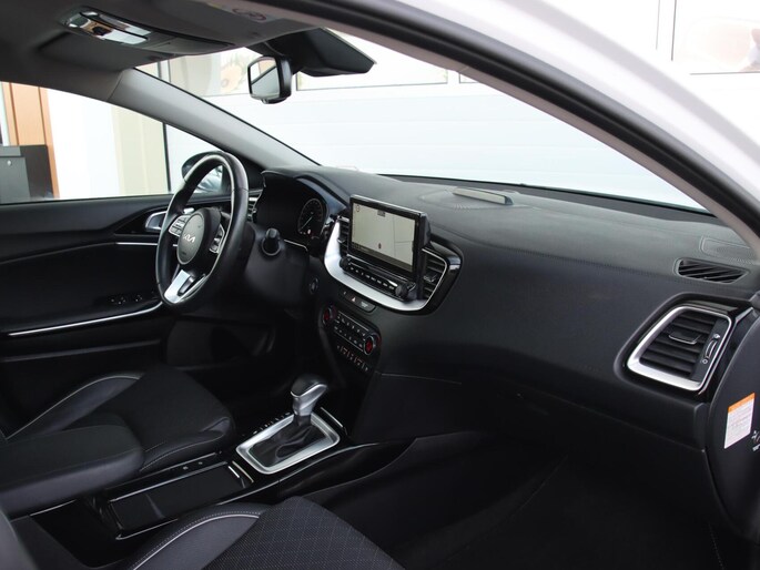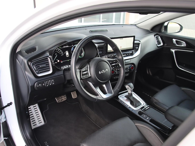Met z'n extra elektromotor geeft de hybride Kia XCeed een heel nieuwe dimensie aan het rijden. Een lederen interieur is natuurlijk altijd een heerlijke plus. Maar wie van praktisch gemak houdt, wordt ook nog eens extra blij van het elektrisch bediende glazen panorama dak en de elektrisch bedienbare achterklep. Stoelverwarming hoort ook bij de uitrusting van deze auto. Luxepaardjes en levensgenieters worden enthousiast van de verwarmde achterbank. Natuurlijk behoren 18 inch lichtmetalen velgen, LED koplampen, donker getint glas achter, in delen neerklapbare achterbank, LED-achterlichten en verstelbare lendensteunen ook tot de uitrusting van deze complete auto.