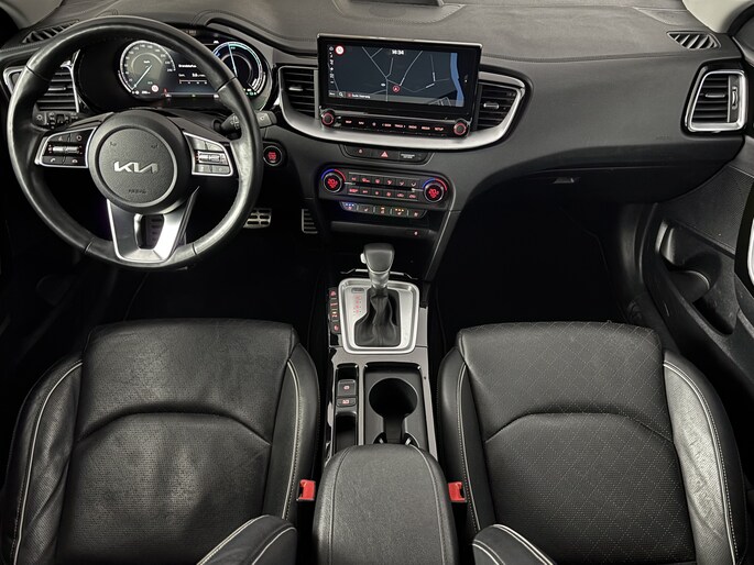 Wil je Movement that inspires, dan kies je voor Kia. Elektrisch rijden of liever benzine? Kiezen hoeft niet, want de hybride motor maakt het allebei mogelijk. Aan gemak én ruimte is uitstekend gedacht: een elektrisch bediend glazen panorama dak en een elektrisch bedienbare achterklep. En dan krijg je het mooie lederen interieur er ook nog eens bij! In de guurste maanden is de meegeleverde stoelverwarming een absolute weldaad! Ook achterin is iedereen snel op temperatuur door de verwarmde achterbank. Bij de rijke uitrusting horen ook 18 inch lichtmetalen velgen, LED koplampen, donker getint glas achter, in delen neerklapbare achterbank, LED-achterlichten en verstelbare lendensteunen.