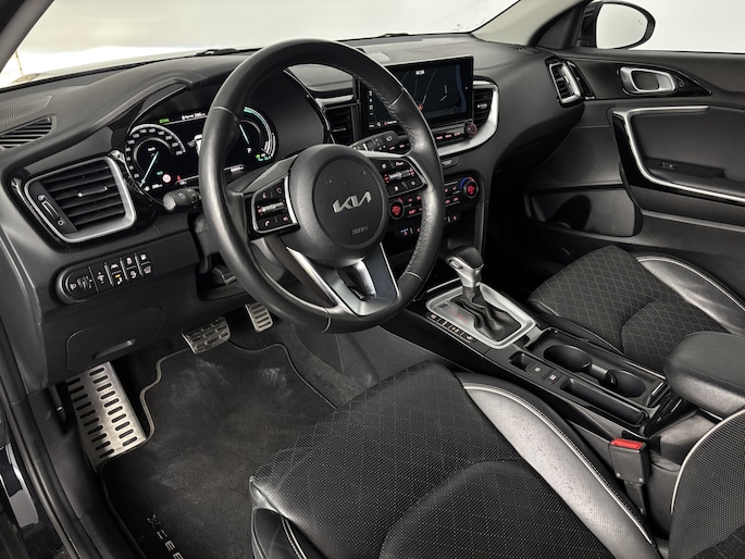 De Kia XCeed is jouw trouwe partner onderweg, want hij houdt continu voor jou de situatie op en om de weg in de gaten. Volautomatische veiligheidssystemen kunnen daarbij ingrijpen om je voor gevaarlijke situaties te behoeden. Tijdens de rit heb je altijd een bijrijder, want de verkeersbord-detectie leest de borden langs de weg en projecteert ze voor je op het instrumentarium. Een camera houdt de juiste koers binnen de rijstrook in de gaten en het Lane-keeping systeem corrigeert bij afwijkingen. Het risico van een kop-staartbotsing wordt aanzienlijk verminderd door de forward collision warning. Bovenop deze veiligheidsfeatures heeft deze Kia bovendien dodehoekdetectie, hill hold functie, vermoeidheidsherkenning, autonoom remsysteem en bandenspanningcontrolesysteem.