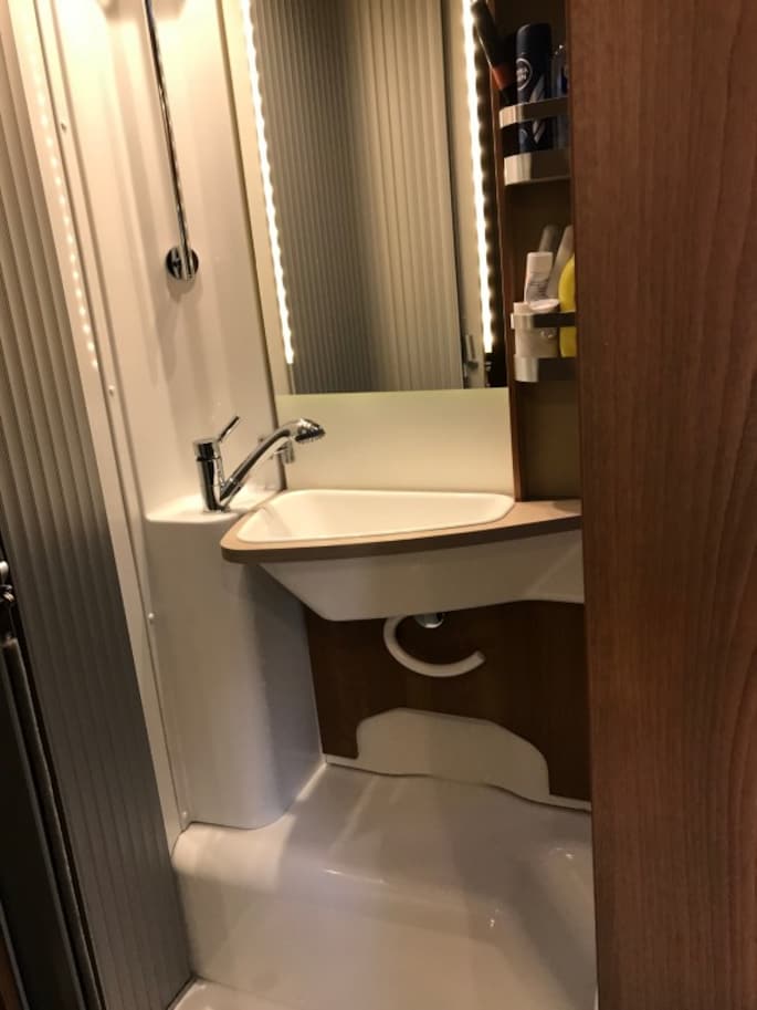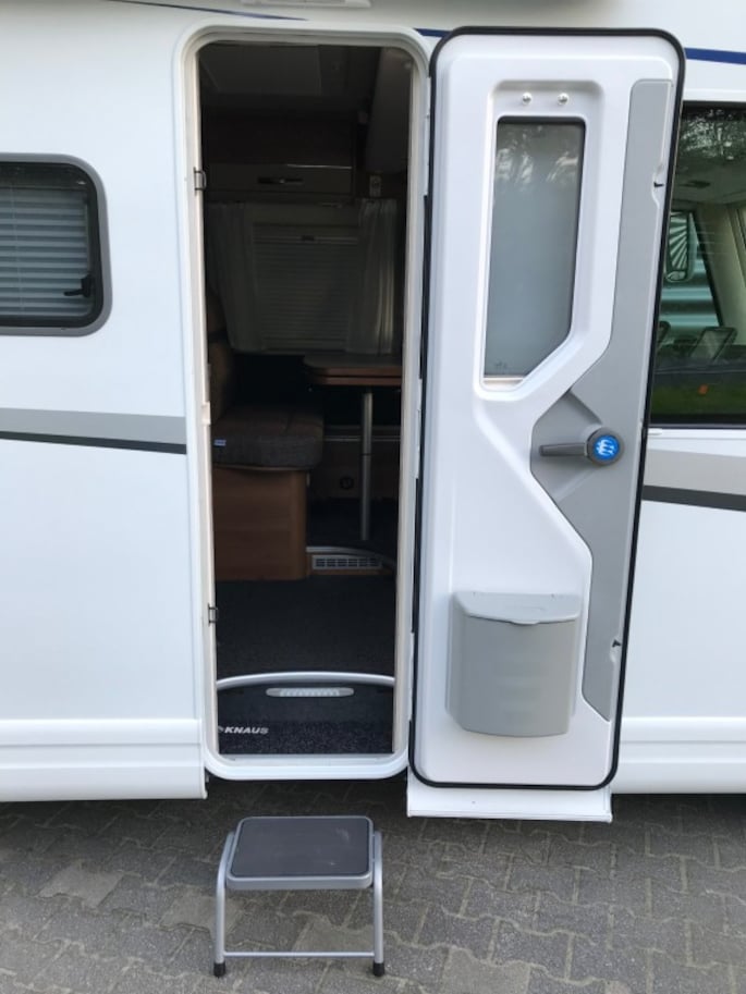 Knaus VAN I 650 MEG, Lengte 700cm, Breedte 220cm, Hoogte 276cm, Fiat Ducato onderstel met een 2.3 mjet motor 150pk (110kw) EURO6, Automaat, 2x aparte lengte bedden achter, Hefbed voor, Meida pakket (Radio DAB+, All-in-One navigatiesysteem en campingsoftware, Achteruitrij camera), TV pakket (Oyster 85 Premium Twin incl. LED-TV 24'), Veiligheidspakket (Alarminstallatie, Gassensor), GFK dak, Matras verwarming, Ledverlichting voor en achter, Adaptive bochtenverlichting, Pliche hordeur, Electrische front rollo, Buiten gas aansluiting, De op de foto afgebeelde trekhaak is verwijderd en is vervangen door een Sawiko fietsendrager.