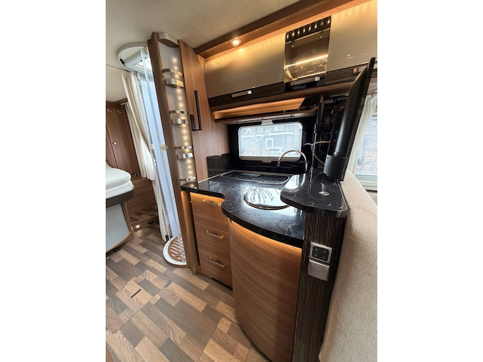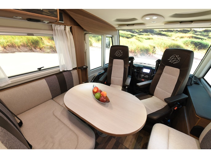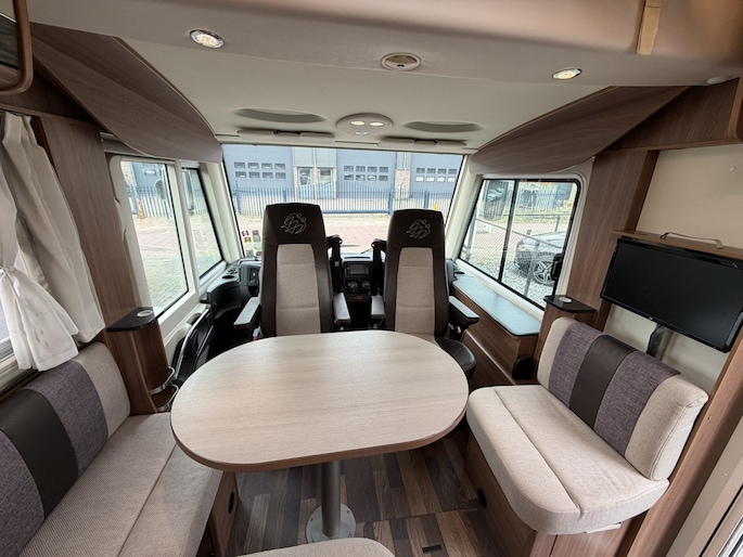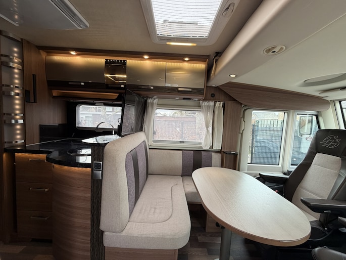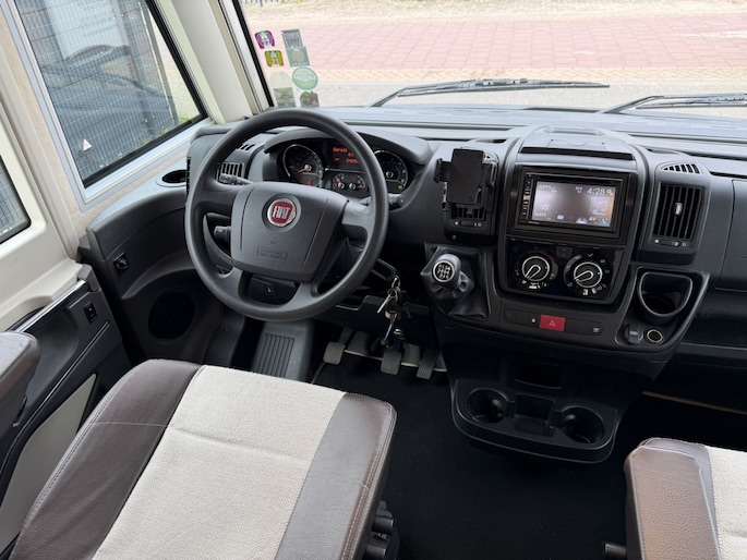 Deze camper staat op een Fiat Ducato met 150pk EURO 5 en voorzien van luchtvering waardoor de hoogte en comfort regelbaar is, de auto is voorzien van de super betrouwbare Fiat 6 traps handgeschakelde versnellingsbak, gezien het vermogen van 150PK ook uitermate geschikt in de bergen. Daarnaast voorzien van trekhaak met 1.800 kg trekvermogen, geschikt voor o.a. fietsendrager of aanhanger. De praktische indeling met hefbed voorin (150 x 200), queensbed achterin (192/167 x 140) (uitschuifbaar) en comfortabele leefruimte maakt deze camper ideaal voor zowel korte trips als langere reizen.