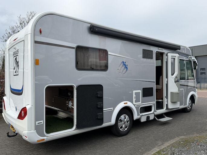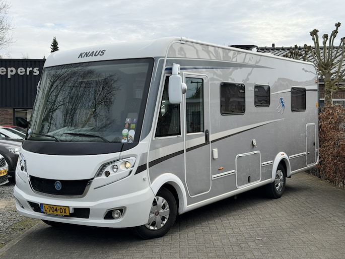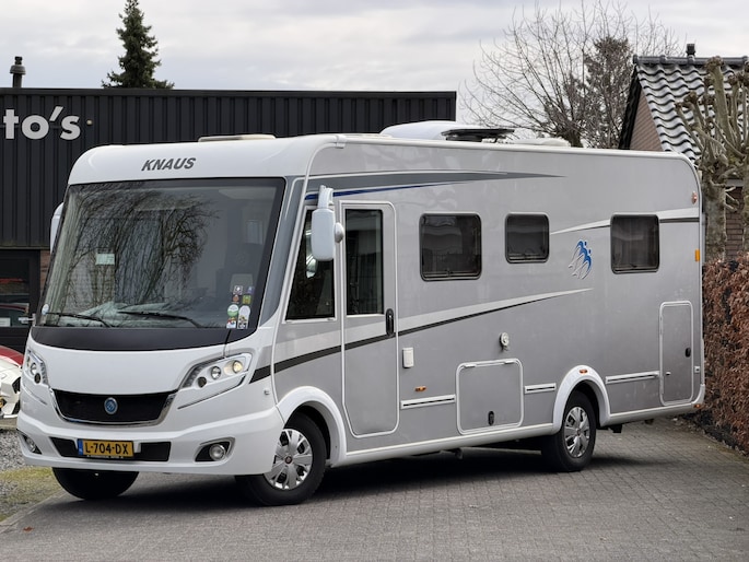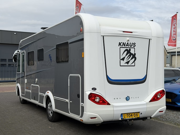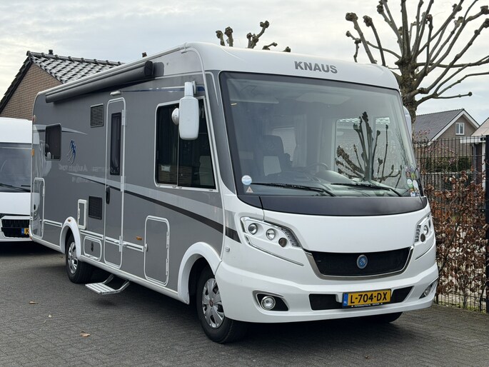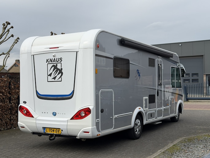 Zeer complete Knaus Sky i Plus 700 LX integraalcamper, lengte 744cm met Queensbed achterin, Airco in woonruimte en cabine, luxe Toronto-interieur, ruime dubbele vloer en grote garage met deuren aan beide zijden. Uitgerust met o.a.cruise control, en twee televisies (32” + originele uitschuifbare TV) en automatische schotel op het dak van het merk Oyster. Dankzij de verzwaarde technische massa tot 4.000 kg biedt deze camper extra eventueel laadvermogen, momenteel staat deze op rijbewijs B (3.500 kg) maar op groot rijbewijs is ook mogelijk.