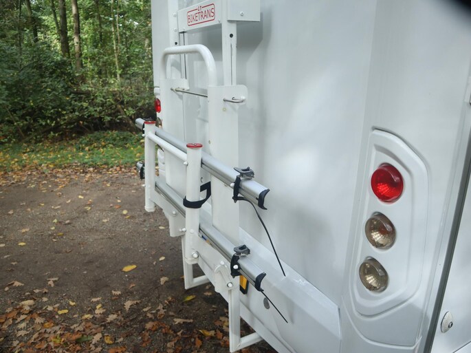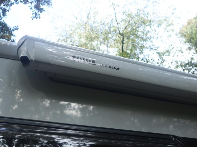 De camper is uitgerust met cruise control en airconditioning voor ontspannen rijcomfort, terwijl het Bear Lock versnellingsbakslot extra gemoedsrust biedt. Onder de Thule luifel geniet je van het buitenleven, en dankzij de elektrische fietsenlift neem je eenvoudig je (elektrische) fietsen mee. Binnen vind je twee aparte bedden die samen een ruim liggedeelte vormen – perfect voor een goede nachtrust na een dag vol avontuur.