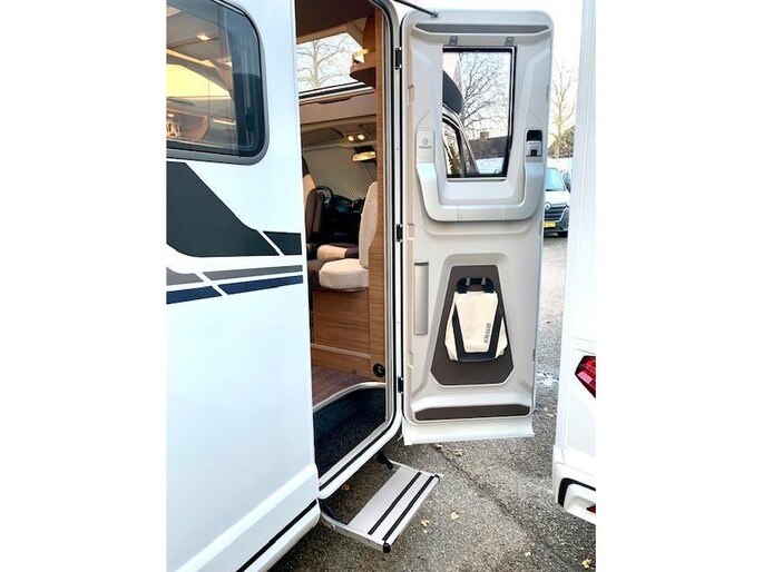 - Extra brede opbouwdeur Knaus "Premium" met RAAM, verduistering, parapluvak en lederen afwerking met lederen tas