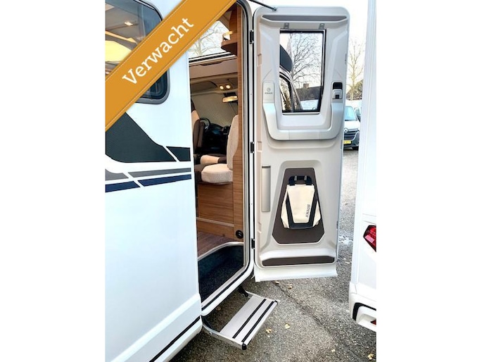 - Extra brede opbouwdeur Knaus "Premium" met RAAM, verduistering, parapluvak en lederen afwerking met lederen tas