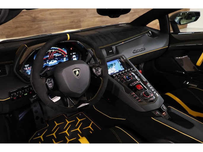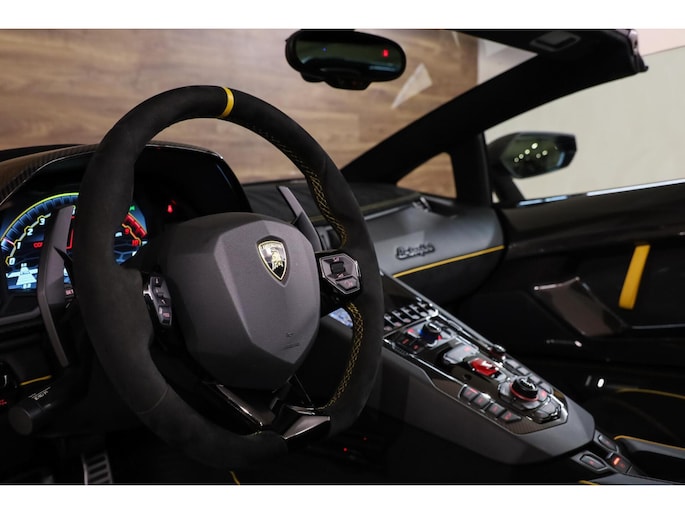 Verder beschikt deze SVJ over tal van speciale opties zoals: Full carbon interieurafwerking, Carbon dak, Originele Carbon Novitec ombouw, Novitec uitlaatsysteem, Full Carbon exterieurdelen, Keramische remschijven, Lift systeem op de vooras, Carbon bucket seats met alcantara interieur, Gele contrastafwerking, 22-inch lichtmetalen Novitec wielen achter, 21-inch lichtmetalen Novitec wielen voor,Parkeercamera, Parkeer sensoren achter, Navigatie, Bluetooth audio, Sensonum audiosysteem, Multifunctioneel Alcantara sportstuurwiel, Schakelmogelijkheid aan stuur etc.