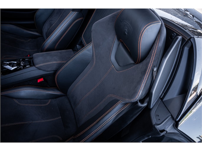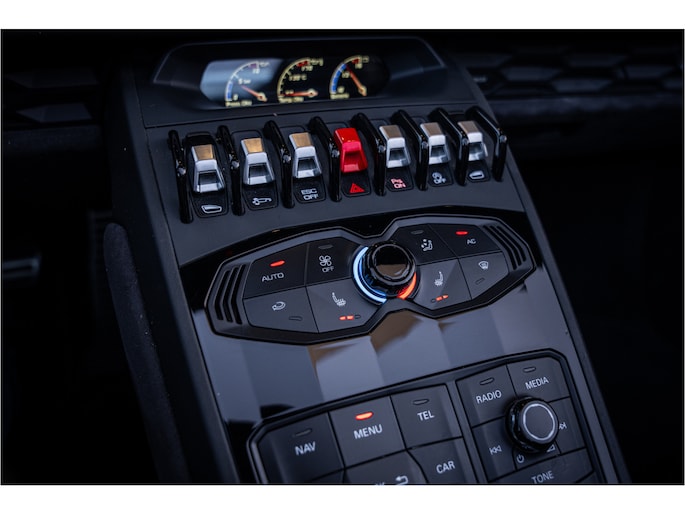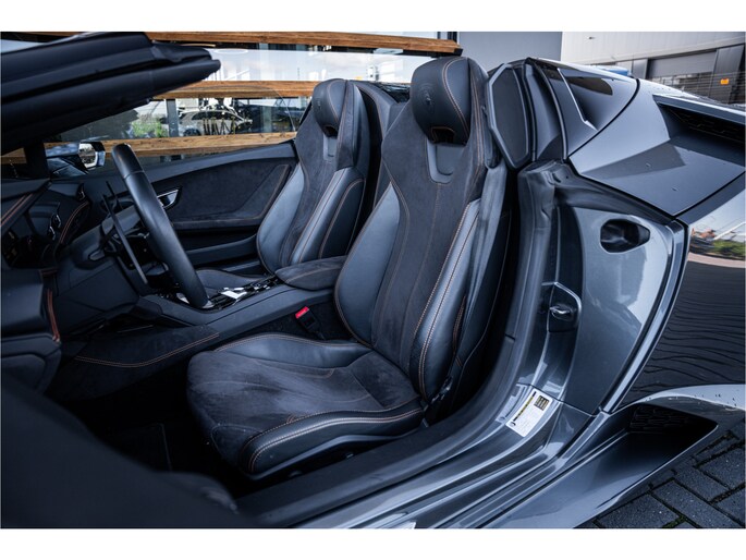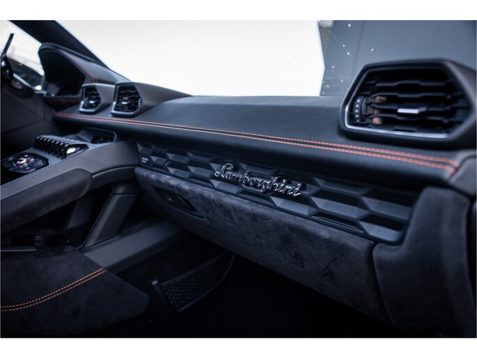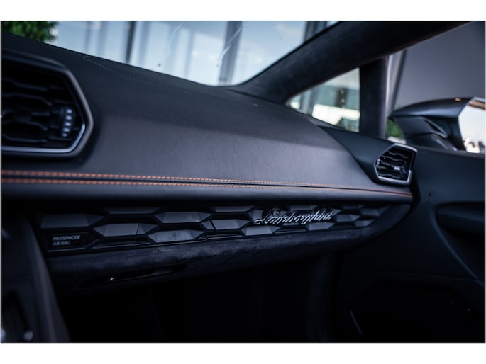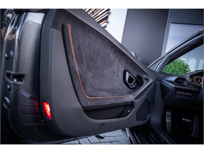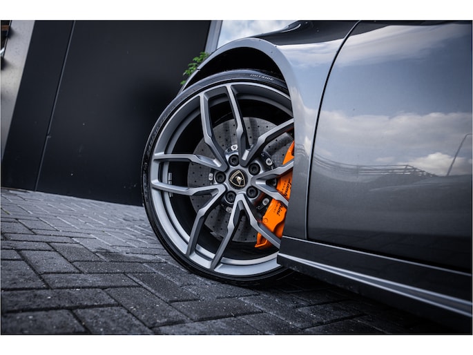 Het exterieur in Grigio Lynx benadrukt de scherpe lijnen en het agressieve, aerodynamische design van de Huracán. Binnenin wacht een cockpit die sportiviteit en luxe naadloos combineert – hoogwaardige materialen, perfect vakmanschap en een omgeving volledig gericht op de bestuurder.