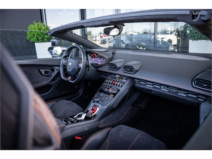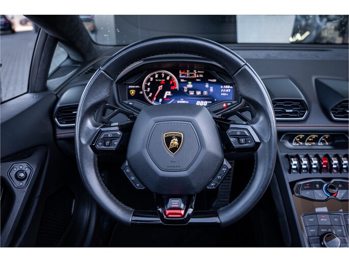 Onder de motorkap ligt de atmosferische 5.2 liter V10, goed voor 610 pk, die zijn volle potentieel laat gelden met een soundtrack die uniek en onmiskenbaar Lamborghini is. De vierwielaandrijving zorgt voor maximale grip, waardoor de Huracán in slechts 3,2 seconden naar 100 km/u sprint en een topsnelheid van ruim 325 km/u bereikt.