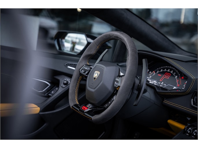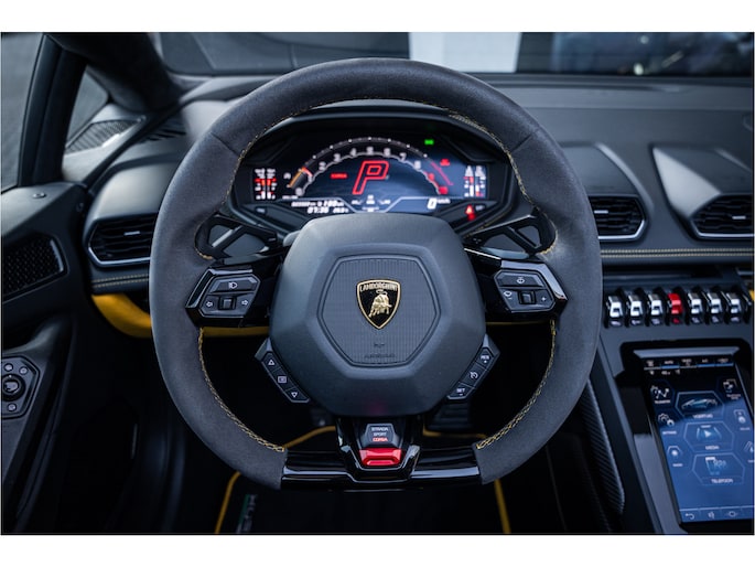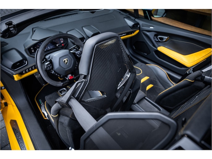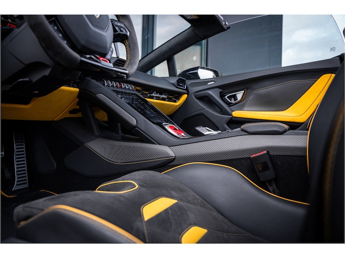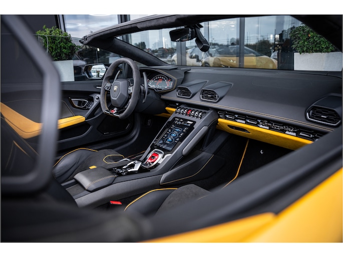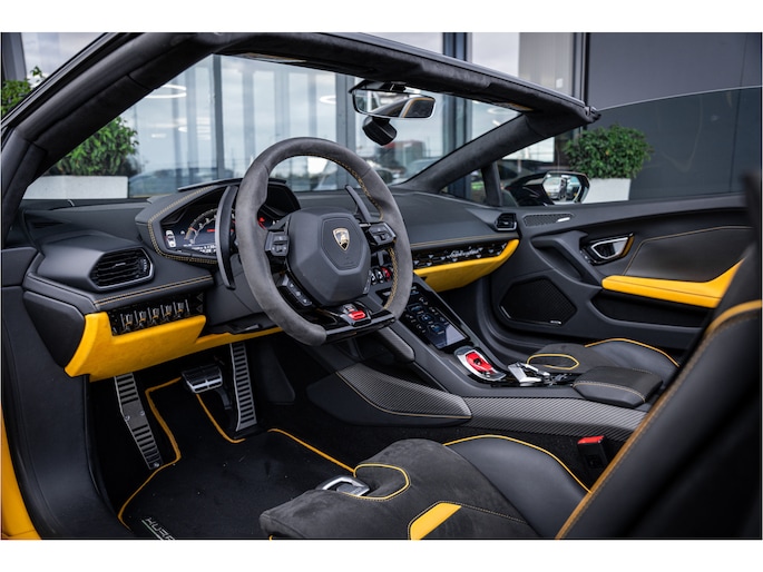 Zodra de zon zich laat zien, kunt u heerlijk genieten achter het stuur van deze cabriolet. Dit is een auto die is ontworpen voor uw comfort. Deze Lamborghini Huracán Evo Spyder is van het bouwjaar 2019. De auto heeft een opmerkelijk lage kilometerstand van slechts 23322 De uitstekende prestaties van deze auto komen van de tiencilinder benzinemotor en de automatische transmissie. De auto is uitgerust met lederen bekleding. Met deze auto gaat open rijden wel heel erg eenvoudig: het elektrische dak opent of sluit met een druk op de knop. Tot de uitrusting van deze Lamborghini behoren ook 20 inch lichtmetalen velgen, adaptief dempingsysteem en variabele stuurbekrachtiging.
