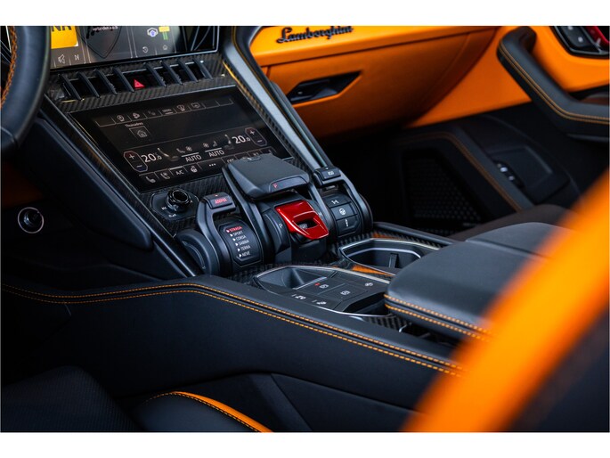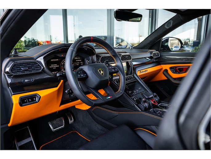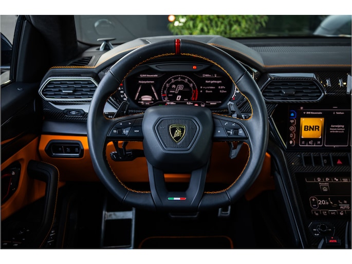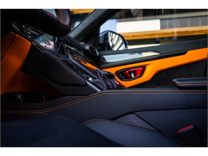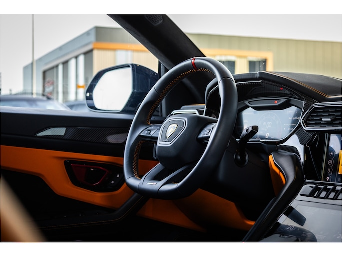 Het design is krachtig en uitgesproken, met scherpe lijnen en een agressieve uitstraling die direct herkenbaar is als een echte Lamborghini. Binnenin geniet u van een luxe, high-tech interieur met hoogwaardige materialen en een cockpit die volledig is gericht op de bestuurder.