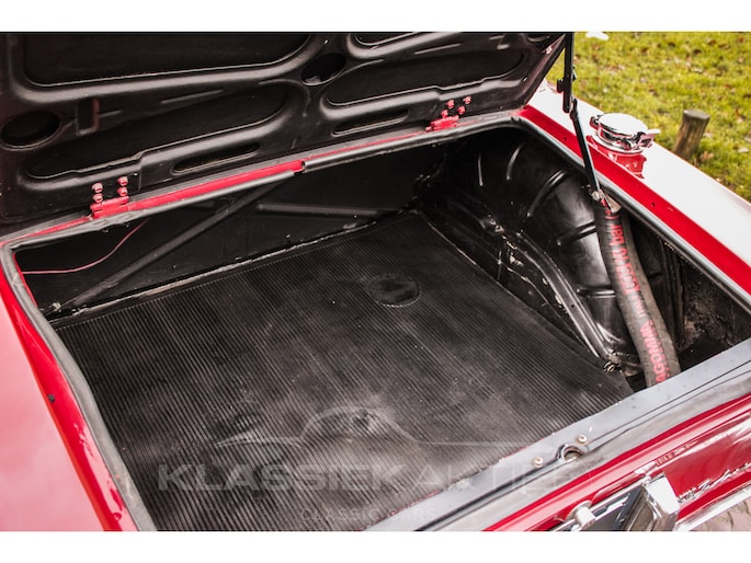 De carrosserie is in zeer goede conditie. De stijlvolle dieprode carrosseriekleur is niet alleen schitterend om te zien, maar ook in goede staat. Ook de verschillende chroom- en sierdelen zijn in glanzende en goede staat. Dit is ook van toepassing op de rubberdelen en afwerkingen. De carrosseriedelen sluiten goed op elkaar aan en de portieren sluiten degelijk en goed. De HF spatlappen en de schitterende grote verstraler aan de achterzijde geven de auto een extra sportief uiterlijk.