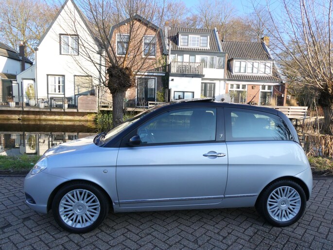 Bent u op zoek naar een stijlvolle en compacte hatchback met een vleugje Italiaanse flair? Dan is deze Lancia Ypsilon 1.4-16V Oro dé auto voor u! Uitgevoerd in een chique grijs-zwarte metallic kleur met luxe opties zoals lichtmetalen velgen.