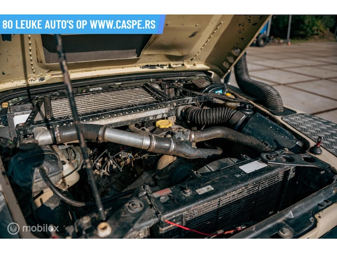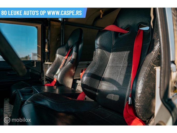 Deze speciaal geprepareerde Defender is origineel van 1987 maar pas voor het eerst met een Nederlands kentenen geleverd 1999 en is daardoor een Youngtimer, die is uitgerust met een oersterke viercilinder dieselmotor waardoor deze betrouwbaarder en gemakkelijker te repareren in het terrein wegens minder electronica. Met behulp van een goede tune en met een grotere intercooler in het mulle zand exact even snel is als een standaard originele Td5.