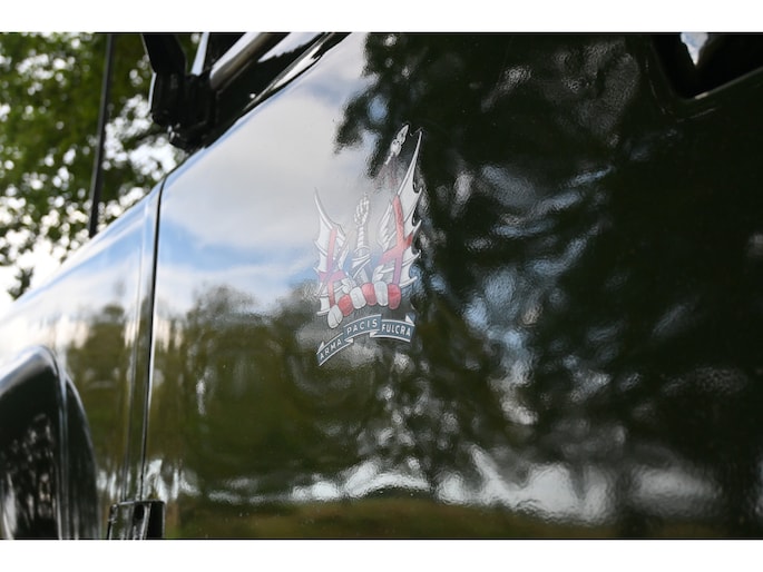 Deze Defender heeft eerst dienstgedaan als millitair voertuig. Toen er een auto nodig was om The Queen langs de artillerie te rijden tijdens London Jubelee, werd deze omgebouwd tot ''The Queen Mobile'' en werd deze voor alle opvolgende Jubilee's in London gebruikt.