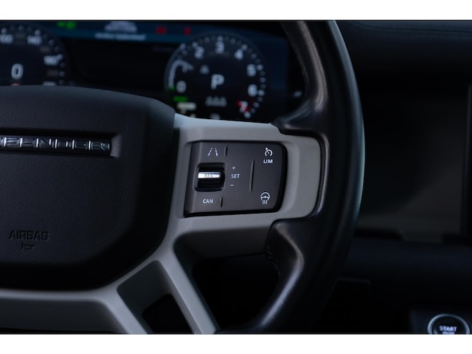 Met zijn inventieve techniek is de hybride Land Rover Defender 110 tegelijk comfortabel en zuinig met brandstof. Deze Land Rover Defender 110 is voorzien van zowel een elektromotor als een verbrandingsmotor. Ideale combi! Boven uw hoofd schuiven de wolken zichtbaar voorbij door het elektrisch bediende glazen panorama dak. En kijk eens aan de achterzijde wat gemakkelijk: een eveneens elektrisch bedienbare achterklep! De meegeleverde stoelverwarming zorgt in no time voor een behaaglijk gevoel als het buiten koud is. Fijn plusje, zeker in de kille dagen, is het verwarmd stuurwiel. Bij de rijke uitrusting horen ook 20 inch lichtmetalen velgen, LED koplampen, adaptief dempingsysteem, trailer assistent, donker getint glas achter en in delen neerklapbare achterbank.