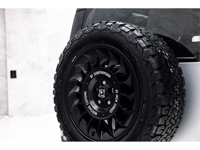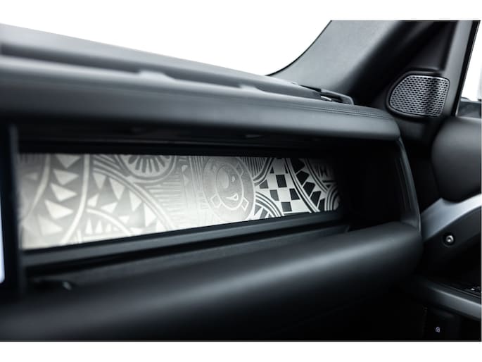 Naast de mogelijkheden vanuit Land Rover is dit exemplaar voorzien van de nodige 'extra' opties; Urban Land Rover Defender verstralers á € 4.265,- en rondom een speciale Heritage uitvoering. Gebaseerd op het design van een Heritage Defender 90 X van Henk Schiffmacher. Vele onderdelen uit dat gamma zijn gebruikt om deze Defender 90 X nog specialer te maken, en hoe!