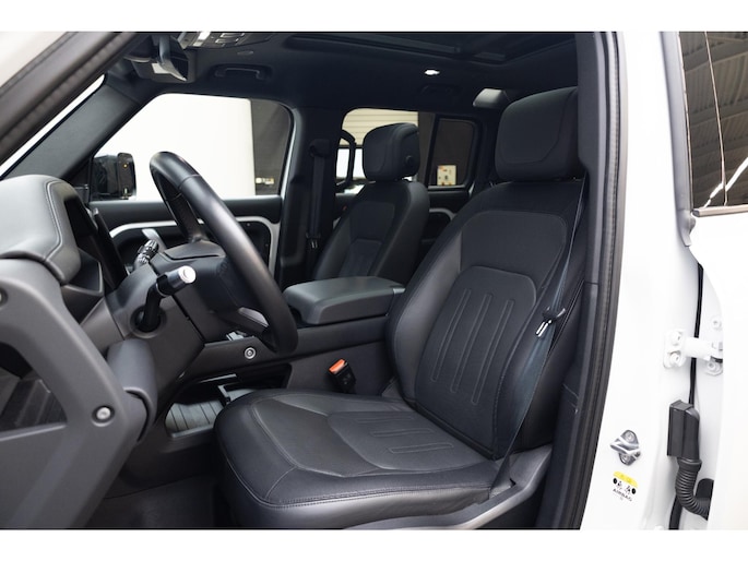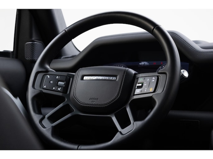 Het personaliseren van jouw cockpitinterface is mogelijk met het digitale dashboard in deze auto. Door het combineren van beelden van vier camera's, biedt de 360 graden camera een naadloos en gedetailleerd beeld van de hele omgeving rondom deze auto. Met adaptive cruise control houdt deze auto automatisch afstand tot jouw voorligger. Nooit meer de weg kwijt: daarvoor zorgt het onboard full map navigatiesysteem. Deze Land Rover Defender 110 is voorzien van sensoren aan de achterzijde om een achteropkomend verkeer waarschuwing te geven als de afstand tussen jou en een achterligger te klein is. De uitrusting van deze auto is met electronic climate control, draadloos opladen, DAB ontvangst, regensensor, keyless entry en automatisch dimmende buitenspiegels behoorlijk compleet.
