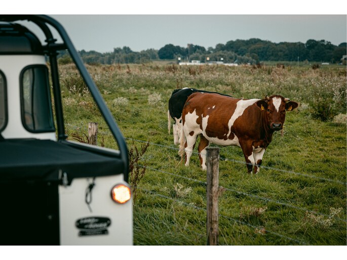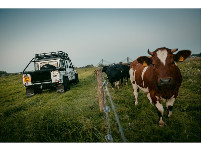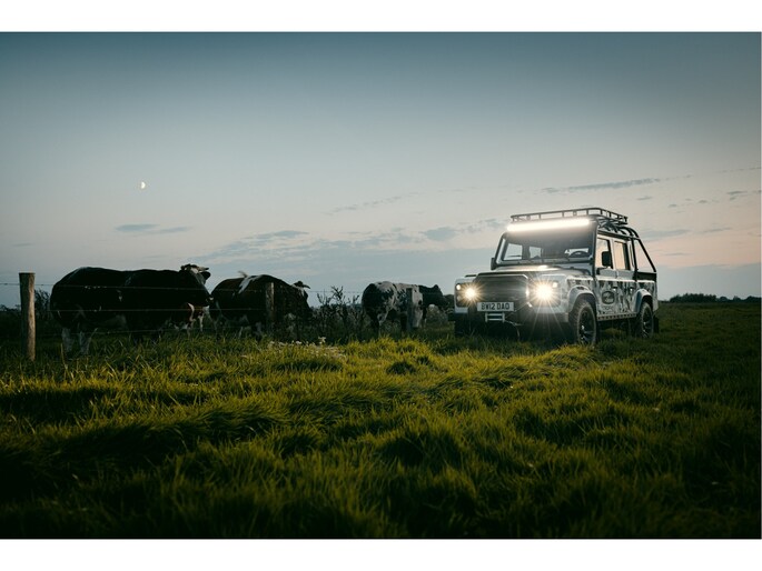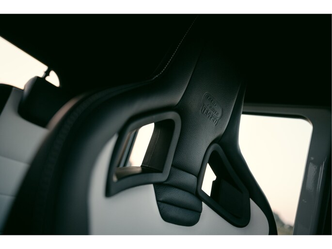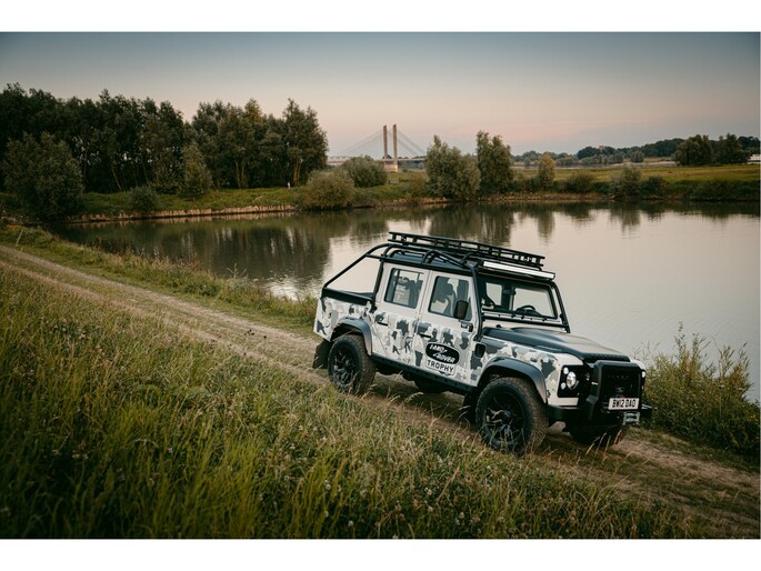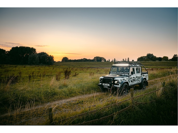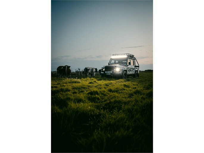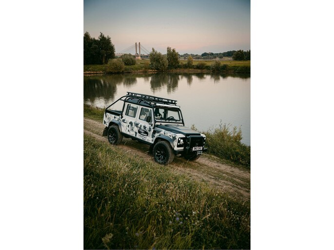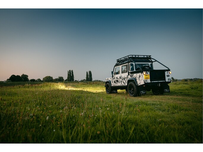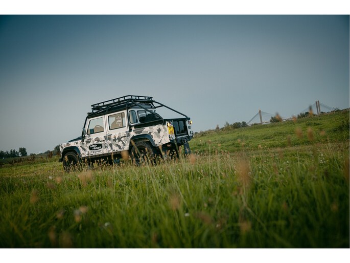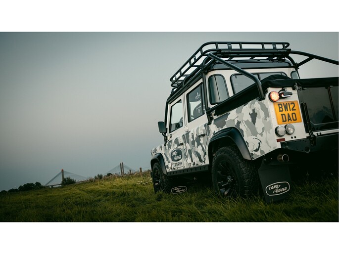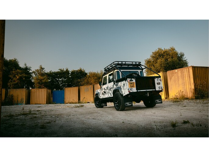 Dit voertuig nam onlangs deel aan een driedaagse ultieme off-road competitie-ervaring in Staffordshire. Afgewerkt in Fuji White met contrasterend Narvik Black dak en glanzende zwarte exterieurelementen, en uitgerust met een 5,0-liter benzine V8-motor en een achttraps ZF automatische transmissie, levert de Defender Works V8 Trophy II 405 pk en 515 Nm koppel. Glanzend zwarte 18-inch Sawtooth lichtmetalen velgen worden aangevuld met verbeterde remmen, een ophangings- en handlingkit voor extra rijvertrouwen. De avontuurlijke camouflage bevat de iconische silhouetten van Defender en Series Land Rovers, verborgen tussen de 23 locaties die een rol hebben gespeeld in Land Rovers illustere avonturen en historische off-road uitdagingen. Accessoires zijn onder meer een multi-point rolkooi en ladder, modderbanden, spotlights, verhoogde luchtinlaat, voertuiglier en bodembescherming; kenmerken om de reis van je leven aan te gaan. De Recaro sportstoelen zijn afgewerkt in hoogwaardig zwart en wit Windsor-leer met contrasterende stiknaden, die steun en comfort combineren. De lederen bekleding strekt zich uit tot het dashboard, de deuren en het hemelbekleding, wat zorgt voor een handgemaakte afwerking door het hele interieur. Een prachtig analoog dashboardklokje, ontworpen en vervaardigd in samenwerking met avonturenhorlogemaker Elliot Brown, is het middelpunt van het dashboard, met een uniek ontwerp dat het camouflagepatroon van het exterieur weerspiegelt.