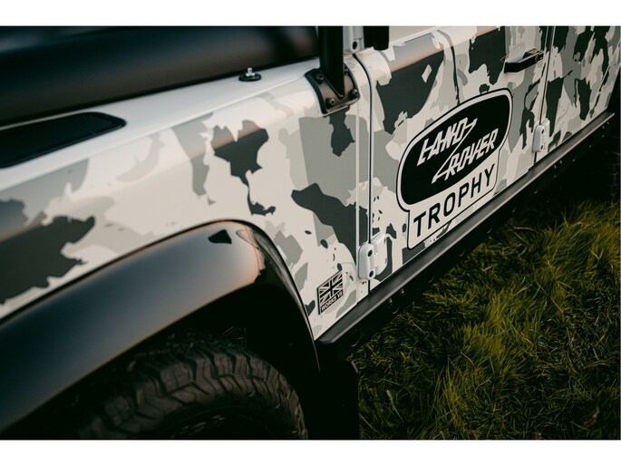In zijn totaliteit zijn er door Land Rover Classic 25 exemplaren uitgevoerd als Trophy 2. Dit is een combinatie van links en rechts gestuurde Trophy's alsmede de 90 en 110 uitvoering. Dit specifieke exemplaar is één van de 4 links gestuurde Trophy's die is uitgevoerd als Crew Cab. Dit maakt deze auto extra uniek.
