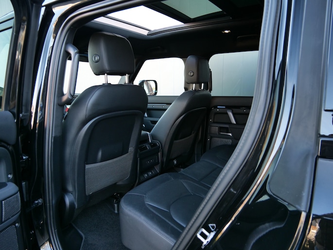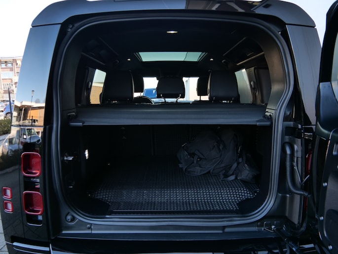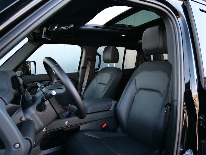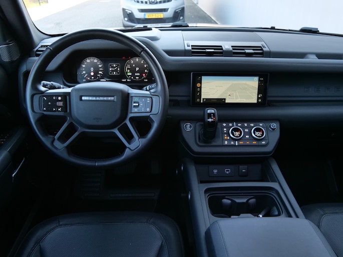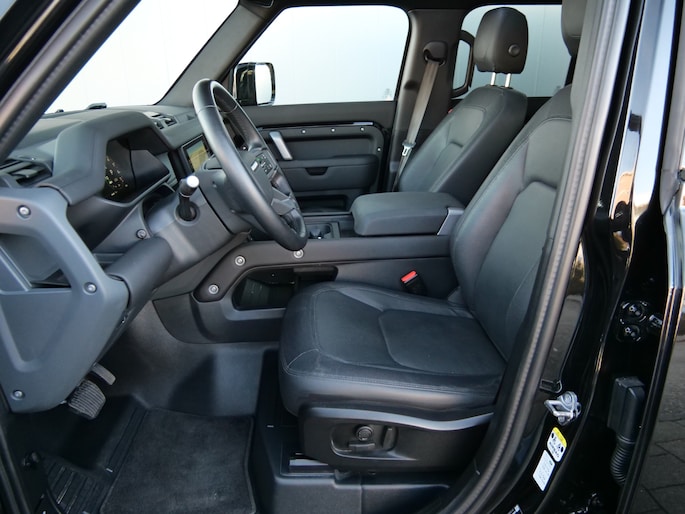 Techniek en design helemaal van nu. Kilometerstand van gisteren. Deze bijna-nieuwe Land Rover Defender 110 heeft z'n nestveren afgeschud en is klaar om te vliegen. De benzinemotor geeft deze auto sportieve prestaties en zorgt voor een laag brandstofverbruik. Dak dicht? Dan toch volop daglicht door het elektrisch bediende glazen panorama dak. Het lederen interieur ademt luxe en de elektrisch bedienbare achterklep biedt volop gemak. Zit u goed? De stoelen zijn eenvoudig instelbaar dankzij de elektrische bediening met geheugen. Oneffenheden in het wegdek? U merkt er niets van dankzij de ingebouwde luchtvering. Ook de passagiers achterin ervaren het ultieme comfort, dankzij de verwarmde achterbank. In deze auto profiteert u onder andere ook van: 20 inch lichtmetalen velgen, LED koplampen, adaptief dempingsysteem, trailer assistent, donker getint glas achter en in delen neerklapbare achterbank.