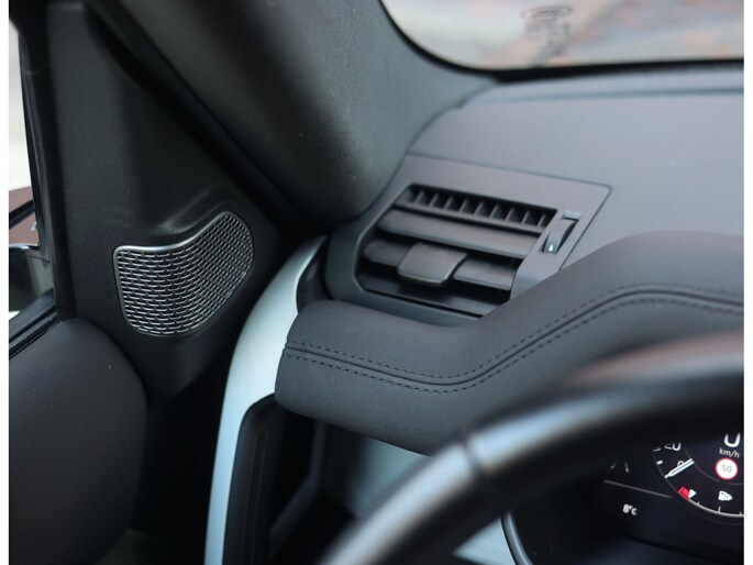 Binnenin is gekozen voor Ebony leder in combinatie met een Morzine hemelbekleding. De 12-voudig verstelbare en verwarmde voorstoelen, het verwarmde stuurwiel en het panoramadak zorgen voor comfort in elk seizoen.