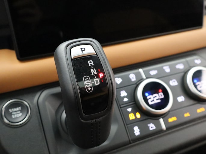 - Met leder beklede transmissiekeuzehendel in Ebony (117AA)