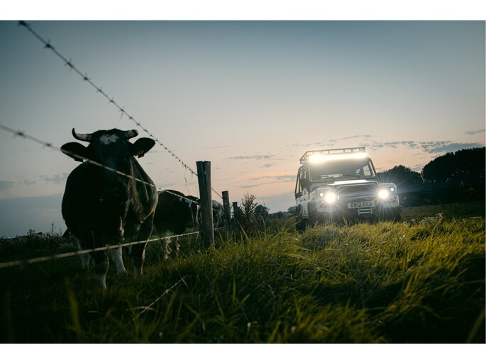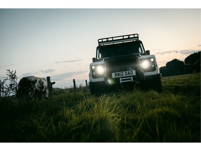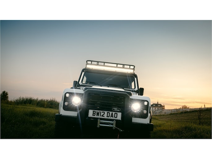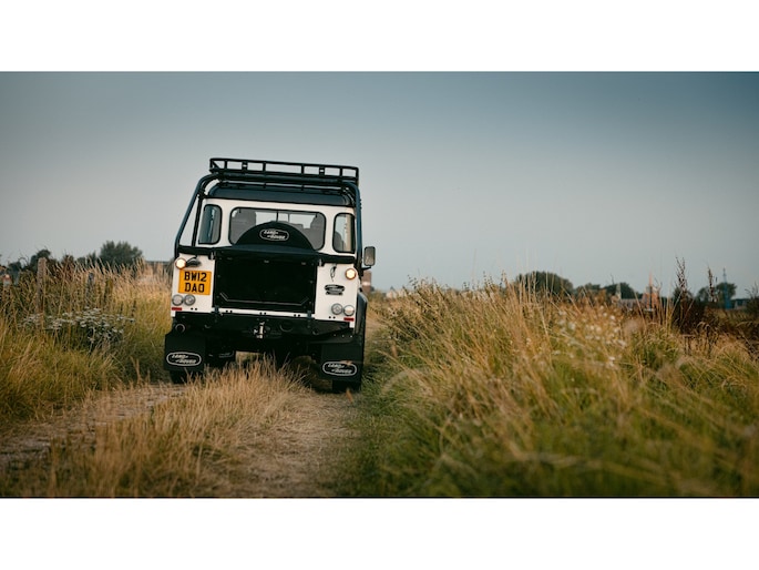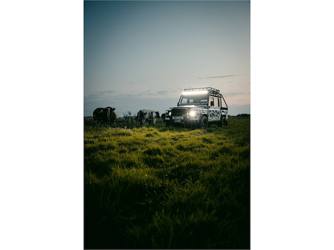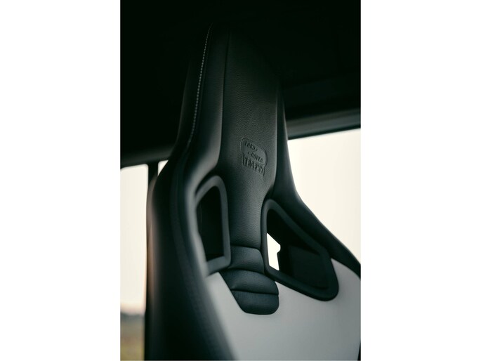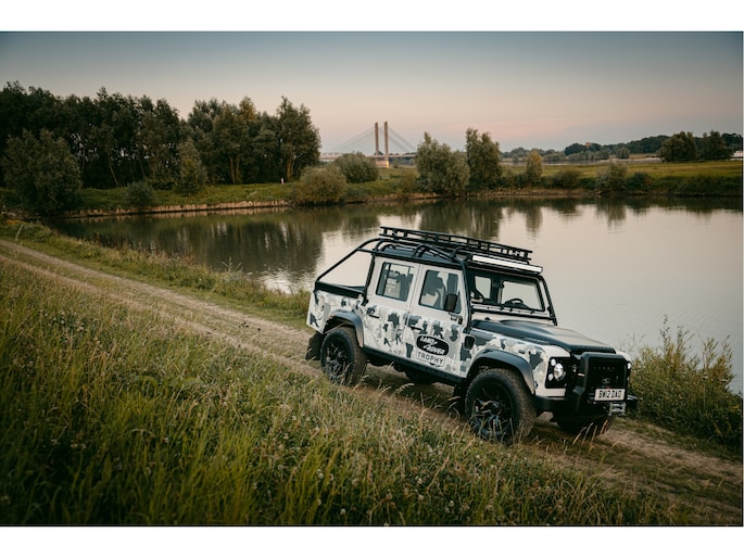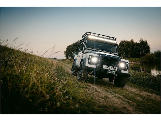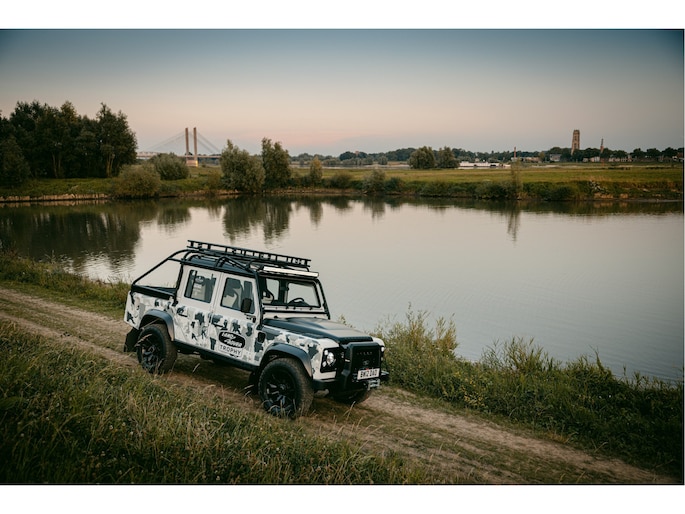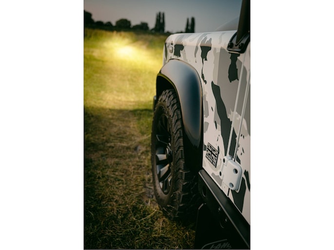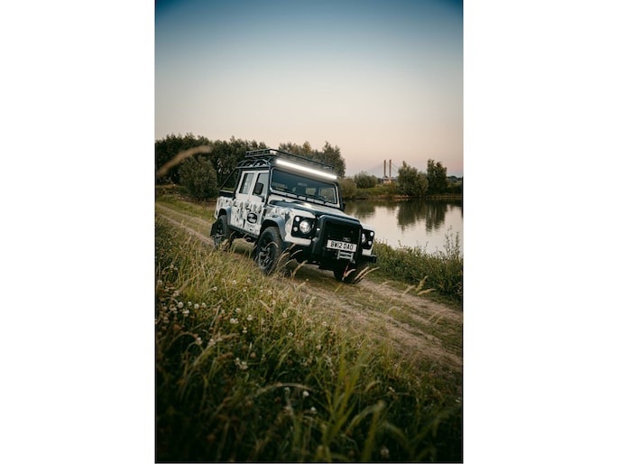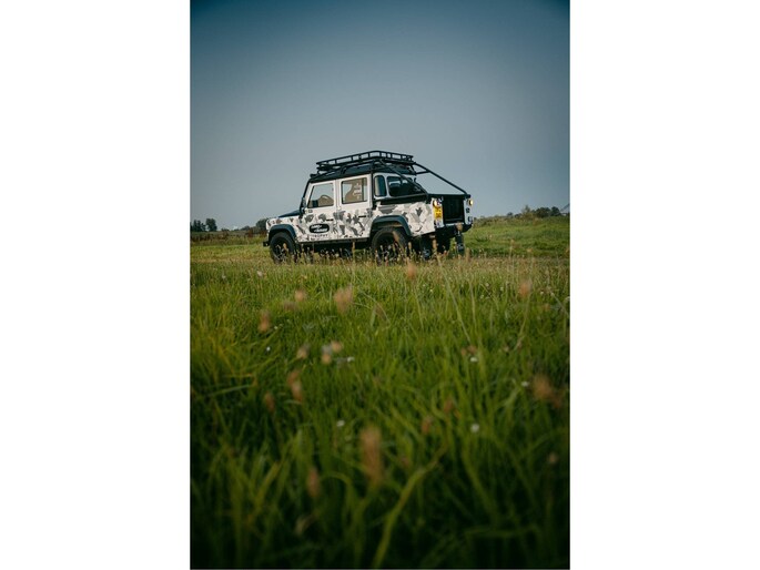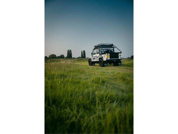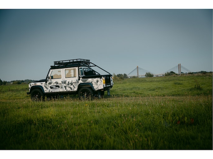 Dit voertuig nam onlangs deel aan een driedaagse ultieme off-road competitie-ervaring in Staffordshire. Afgewerkt in Fuji White met contrasterend Narvik Black dak en glanzende zwarte exterieurelementen, en uitgerust met een 5,0-liter benzine V8-motor en een achttraps ZF automatische transmissie, levert de Defender Works V8 Trophy II 405 pk en 515 Nm koppel. Glanzend zwarte 18-inch Sawtooth lichtmetalen velgen worden aangevuld met verbeterde remmen, een ophangings- en handlingkit voor extra rijvertrouwen. De avontuurlijke camouflage bevat de iconische silhouetten van Defender en Series Land Rovers, verborgen tussen de 23 locaties die een rol hebben gespeeld in Land Rovers illustere avonturen en historische off-road uitdagingen. Accessoires zijn onder meer een multi-point rolkooi en ladder, modderbanden, spotlights, verhoogde luchtinlaat, voertuiglier en bodembescherming; kenmerken om de reis van je leven aan te gaan. De Recaro sportstoelen zijn afgewerkt in hoogwaardig zwart en wit Windsor-leer met contrasterende stiknaden, die steun en comfort combineren. De lederen bekleding strekt zich uit tot het dashboard, de deuren en het hemelbekleding, wat zorgt voor een handgemaakte afwerking door het hele interieur. Een prachtig analoog dashboardklokje, ontworpen en vervaardigd in samenwerking met avonturenhorlogemaker Elliot Brown, is het middelpunt van het dashboard, met een uniek ontwerp dat het camouflagepatroon van het exterieur weerspiegelt.