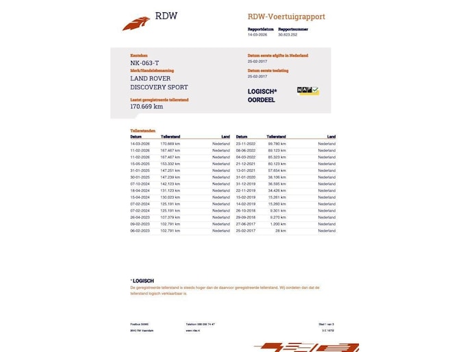 Kilometerstand gecontroleerd