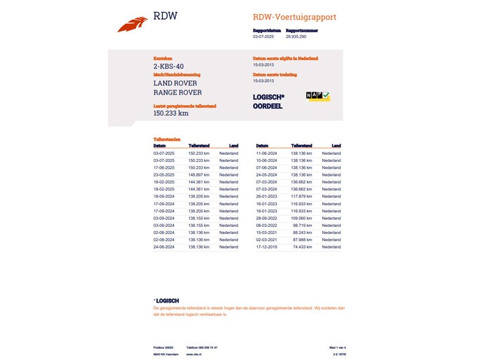 Kilometerstand gecontroleerd