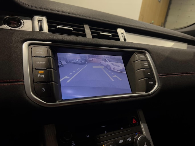De nieuwste veiligheidssystemen komen in deze Land Rover Range Rover Evoque Coupé samen. Op een helling houdt hill hold control de handrem vast totdat u weer gas geeft. De Brake Assist haalt het maximum uit de remkracht van deze Land Rover Range Rover Evoque Coupé als zich een noodsituatie voordoet.