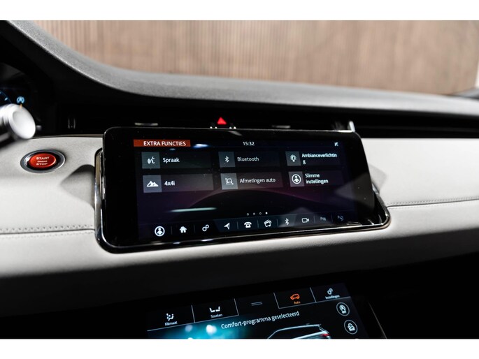 Via het digitale dashboard bent u permanent op de hoogte van alle informatie die u nodig heeft voor een veilige rit. Een vergeten muurtje, een verborgen paaltje? Dat gebeurt niet meer, dankzij de achteruitrijcamera. Adaptive cruise control is een comfortabele en veilige optie. Het systeem reguleert de snelheid en houdt automatisch afstand tot uw voorligger. Naast handmatige bediening kunt u belangrijke functies met uw stem bedienen dankzij de ingebouwde spraakbediening. Connected Services zorgen ervoor dat de belangrijkste functies en data van de auto altijd en overal te checken zijn. Gewoon via de app op de smartphone. Ook is de Land Rover uitgerust met: high performance audiosysteem, navigatiesysteem, automatische airconditioning, DAB ontvangst, regensensor en keyless entry.