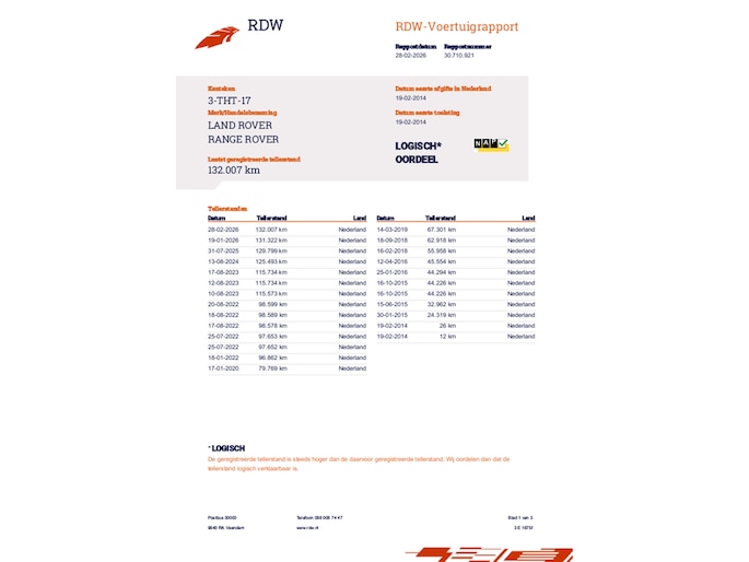 Kilometerstand gecontroleerd