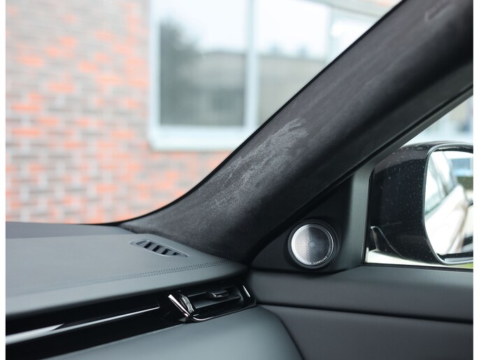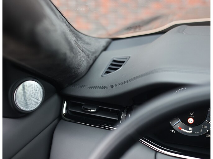 Binnenin gaat de luxe verder, u wordt namelijk ontvangen door zwarte bekleding in een combinatie van leder met diamantperforatie en Suede. Het panoramadak zorgen samen met de verwarmde en gekoelde voorstoelen voor een zeer comfortabele ervaring tijdens elke rit. Het Meridian Surround System zorgt voor een ongekende beleving van uw favoriete muziek.