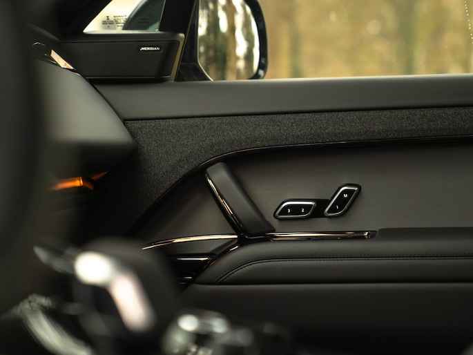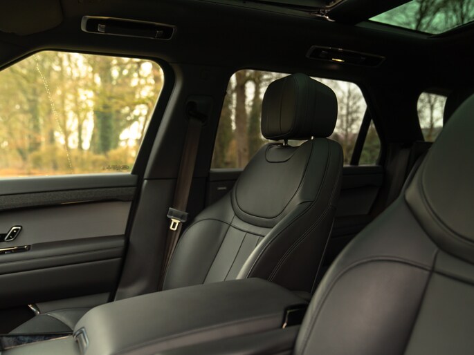 Het interieur van de Range Rover Sport 440e PHEV is het toppunt van tijdloze klasse, geavanceerde luxe en ergonomie. Grote digitale schermen en dito aanraakknoppen zorgen voor een overzichtelijk en stijlvol geheel. De bediening voelt hierdoor allesbehalve een duik in het diepe. Toch treft u binnenin geen zee aan blauwe elementen, maar chic zwart leder op stoelen, dashboard, stuurwiel, portieren en armsteunen. De hemelbekleding doet mee aan de duistere finish, maar wordt onderbroken door heel veel glas. Zo houdt u het elegant en luchtig tegelijk, in een erg ruimtelijke cockpit die extra sfeervol en knus aandoet dankzij Ambient Lighting.