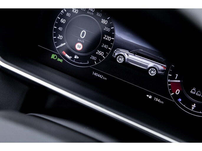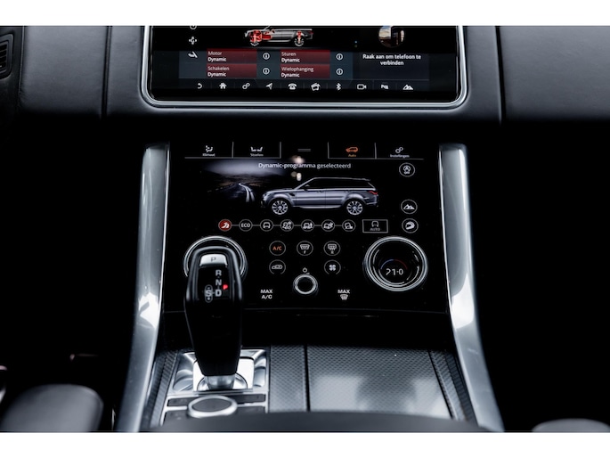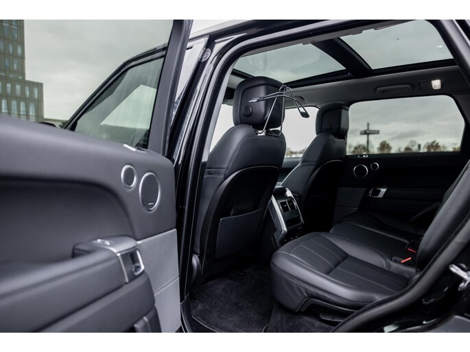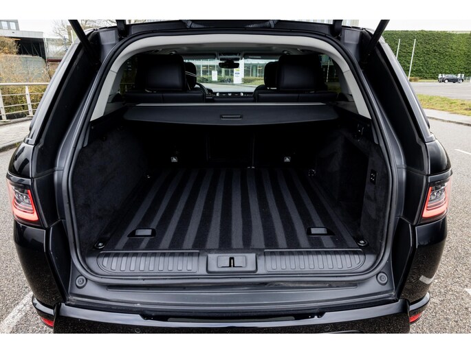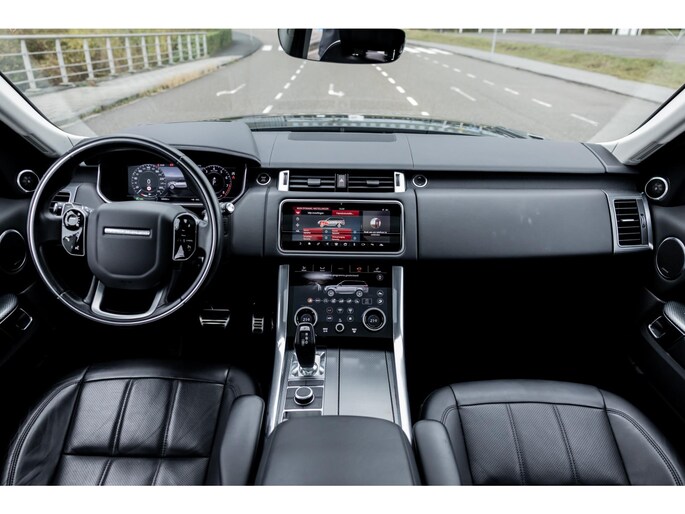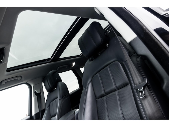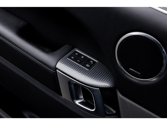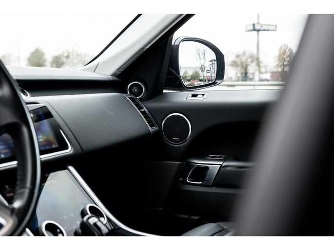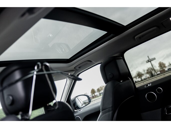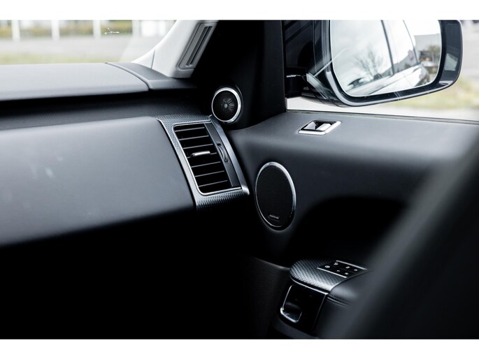 Ook binnenin is het één en al luxe en overdadige afwerking met zwart leder, hoogglans zwarte sierlijsten en de speciale sierlijsten in Dark Engine turned aluminium. Uiteraard wil je zelf achter het stuurwiel zitten met prachtig uitzicht over de drie grote displays en genieten van de weldadige luxe. Boven je prijkt een groot glazen panoramadak. Deze meest luxe Autobiography Dynamic uitvoering voorziet in een ongekende lijst met luxe opties. Zo zetel je op heerlijke zetels bekleed in zacht leder, 22-voudig elektrish verstelbaar met memorystanden en uiteraard voorzien van zowel stoelverwarming als stoelventilatie. Het multimediasysteem beschikt over Apple CarPlay/ Android Auto, navigatie en een uitgebreid 360° camerasysteem. Het Meridian Surround Sound is het beste systeem dat je kunt krijgen in de Sport. Met 18 luidsprekers, subwoofer en 825W versterker is de geluidsbeleving fenomenaal. Zoals gezegd beschikt de Range Rover over LED Matrix koplampen en grootlichtassistent. De richtingaanwijzers kennen het befaamde dynamisch licht. Alle rijassistenten zijn beschikbaar waaronder Blind Spot en adaptieve cruise control. Heel praktisch is de elektrisch uitklapbare trekhaak.
