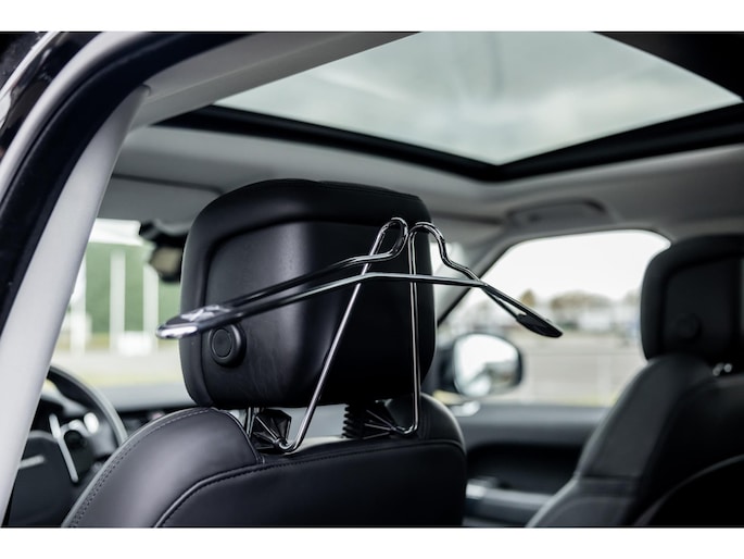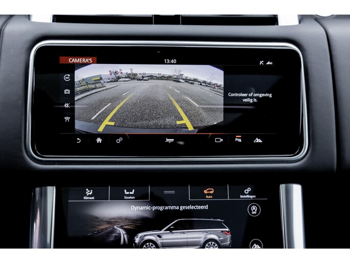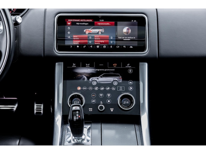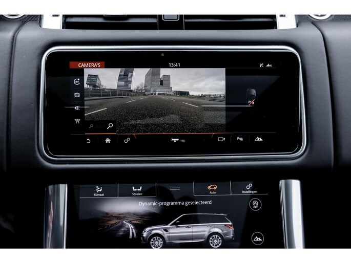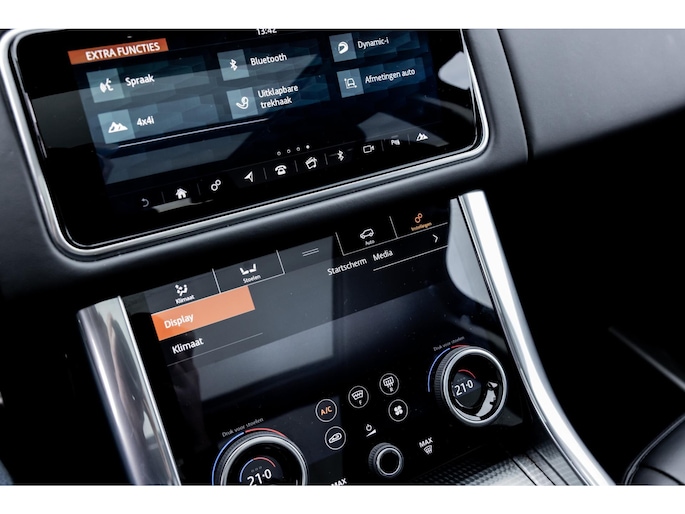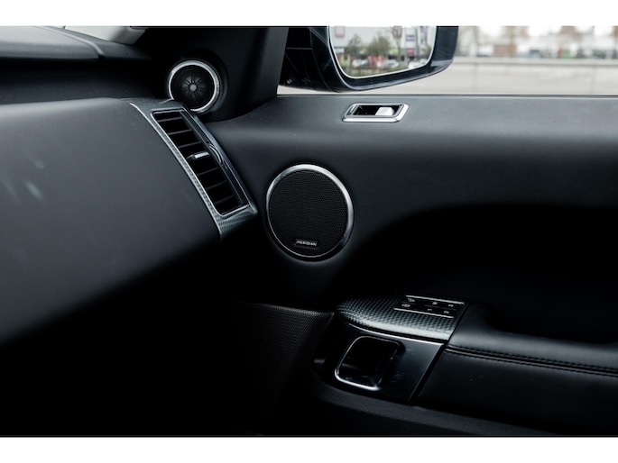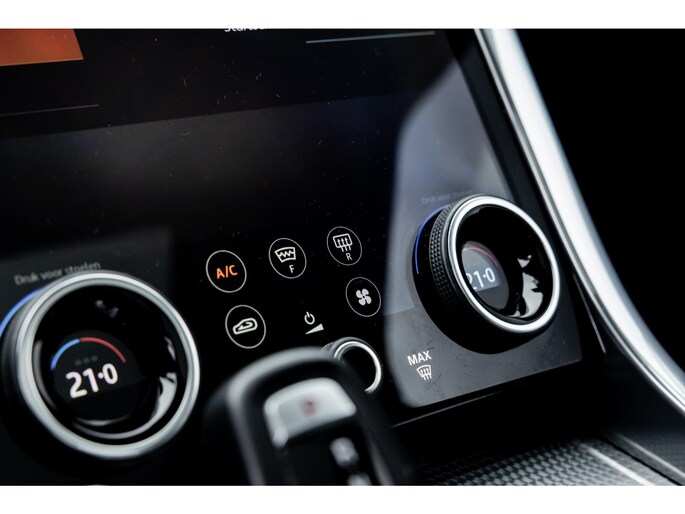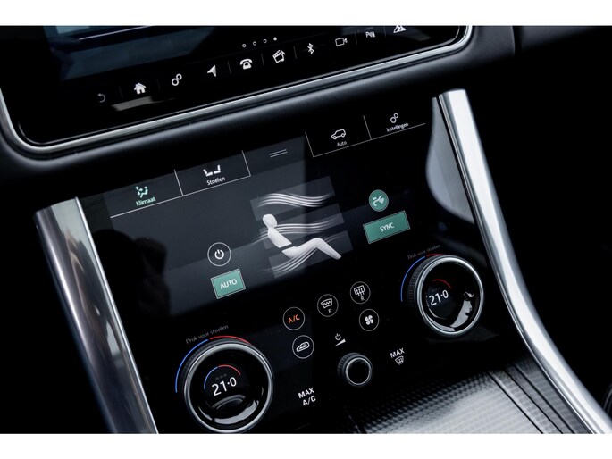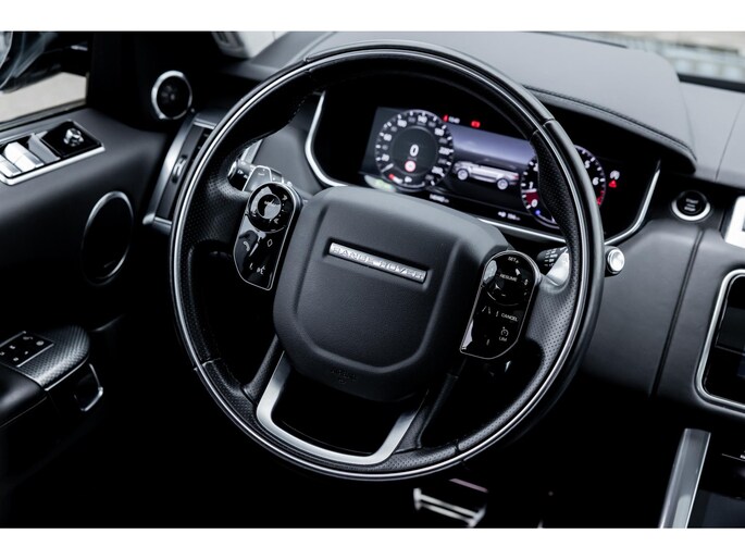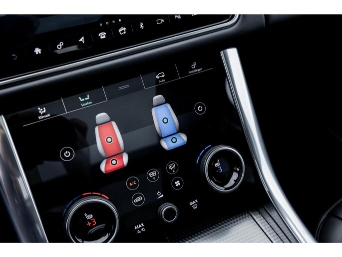 Ook binnenin is het één en al luxe en overdadige afwerking met zwart leder, hoogglans zwarte sierlijsten en de speciale sierlijsten in Dark Engine turned aluminium. Uiteraard wil je zelf achter het stuurwiel zitten met prachtig uitzicht over de drie grote displays en genieten van de weldadige luxe. Boven je prijkt een groot glazen panoramadak. Deze meest luxe Autobiography Dynamic uitvoering voorziet in een ongekende lijst met luxe opties. Zo zetel je op heerlijke zetels bekleed in zacht leder, 22-voudig elektrish verstelbaar met memorystanden en uiteraard voorzien van zowel stoelverwarming als stoelventilatie. Het multimediasysteem beschikt over Apple CarPlay/ Android Auto, navigatie en een uitgebreid 360° camerasysteem. Het Meridian Surround Sound is het beste systeem dat je kunt krijgen in de Sport. Met 18 luidsprekers, subwoofer en 825W versterker is de geluidsbeleving fenomenaal. Zoals gezegd beschikt de Range Rover over LED Matrix koplampen en grootlichtassistent. De richtingaanwijzers kennen het befaamde dynamisch licht. Alle rijassistenten zijn beschikbaar waaronder Blind Spot en adaptieve cruise control. Heel praktisch is de elektrisch uitklapbare trekhaak.