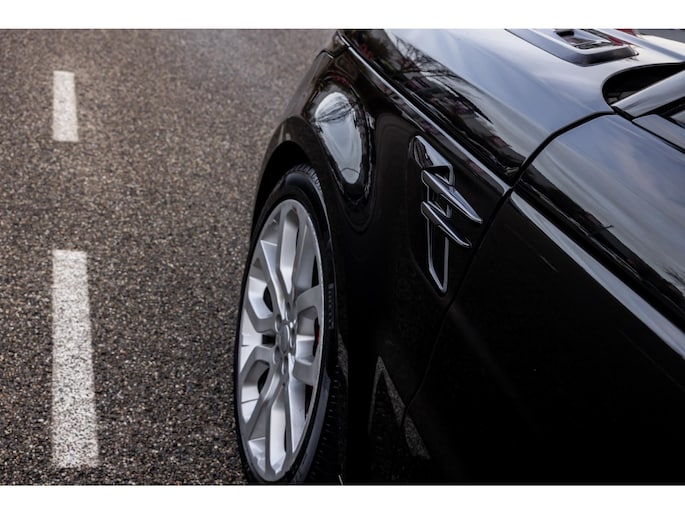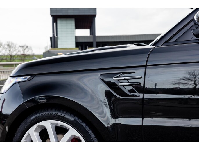 De Range Rover Sport van deze nieuwe generatie is een lust voor het oog. De koets is imposant, maar straalt naast elegantie ook zeker sportiviteit uit. De prachtige kleurstelling van Santorini Black parelmoerlak gecombineerd met het zwart lederen interieur is perfect gekozen. De Supercharged voorziet tevens in een bijzonder exterieurpakket met fraaie bumpers, high gloss side vents, motorlouvres, black optiek en uiteraard de 22” Supercharged velgen in Gloss Silver. De LED Matrix koplampen met Signature LED dagrijverliching met donkere koplampunits maken de uitstraling compleet.