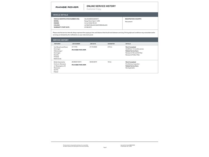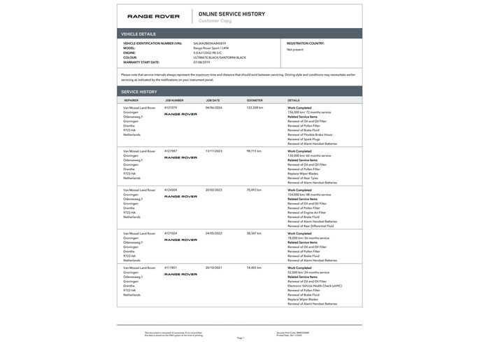 De Range Rover is weliswaar van 2019, maar kwam in 2020 naar Nederland als nagenoeg nieuwe auto met slechts 675 km. Het onderhoud is van begin tot eind door de erkende dealer uitgevoerd. Sterker nog iedere servicebeurt is door Land Rover dealer Van Mossel Groningen gedaan.