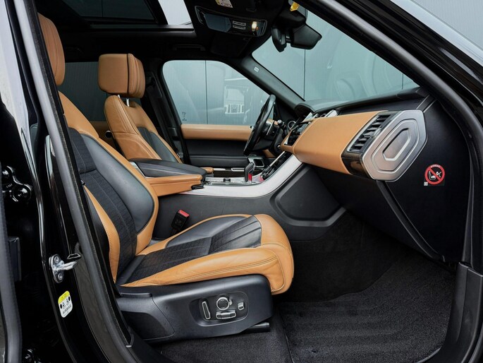 Ontspannen en zorgeloos autorijden, dat doet u met deze Land Rover Range Rover Sport. Deze auto komt uit het bouwjaar 2018. Met zijn benzinemotor en automatische transmissie is dit een prima auto voor nog vele kilometers. Voor een optimale rijhoogte, meer comfort en verhoogde stabiliteit zorgt de automatische luchtvering. Lederen bekleding is een smaakvolle en comfortverhogende optie. Het maakt niet uit hoe koud het buiten is; het verwarmbare stuurwiel en de verwarmbare voorstoelen inclusief massagefunctie verzekeren u van ongeëvenaard comfort. Dankzij de elektrische stoelbediening is het gemakkelijk om de optimale zitpositie te vinden. Licht en lucht komen onbelemmerd binnen als het elektrisch bediende glazen panoramadak met één druk op de knop wordt geopend. De elektrisch bedienbare achterklep opent met een druk op de knop. Bij de rijke uitrusting horen ook 22 inch lichtmetalen velgen, LED-koplampen, adaptief dempingsysteem, trailer assistent, extra getint glas en in delen neerklapbare achterbank.