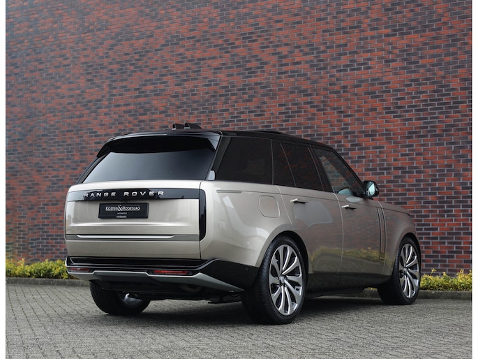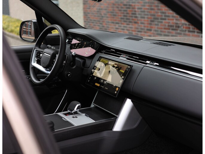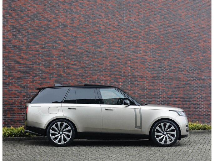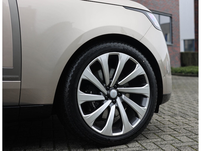 De Range Rover is een prominente aanwezigheid, een auto waar uw blik keer op keer naar aangetrokken wordt. Met zijn statige postuur, strakke lijnen en klassieke uitstraling weet deze SUV menig nekken te laten draaien. Het Batumi Gold lakwerk staat in mooi contrast met het hoogglans zwarte dak en de 23” SV velgen met daarachter zwarte remklauwen. Om het plaatje compleet te maken zijn alle accenten uitgevoerd in Nickel Atlas, wat voor een extra chique uitstraling zorgt.