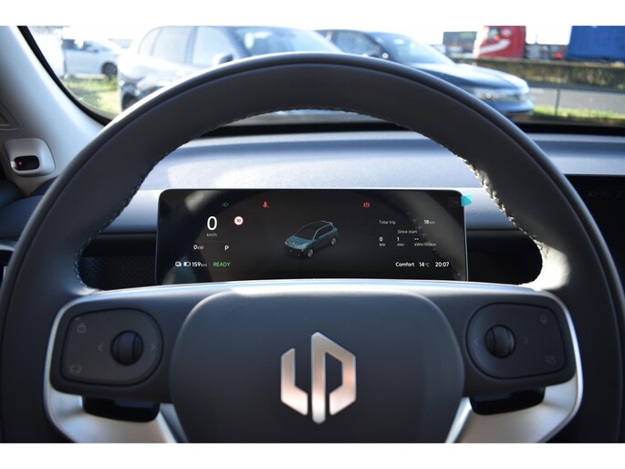 Het digitale dashboard in deze auto maakt personalisatie van uw cockpitinterface mogelijk. Met de hulp van vier camera's, biedt de 360 graden camera op deze auto een panoramisch zicht, wat bijzonder nuttig is bij het parkeren en manoeuvreren. Als u de adaptive cruise control inschakelt, regelt de auto zelf de snelheid en de afstand tot de auto voor u. Bedient u de auto liever met uw stem? Dan is het goed om te weten dat spraakbediening aanwezig is. Dankzij Connected Services heeft u overal en altijd uw dashboard op zak. Alle belangrijke functies zijn te checken via de app. Ook is de Leapmotor uitgerust met: premium audiosysteem, navigatiesysteem, achteropkomend verkeer waarschuwing, electronic climate control, draadloos opladen en DAB ontvangst.