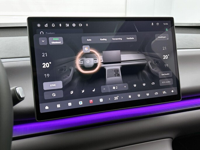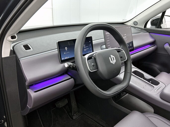 Iedere rit in een elektrische auto is een weldaad: u rijdt ontspannen en in alle rust, er is volop vermogen en u komt verkwikt op uw bestemming aan. Power, stilte en nul procent uitlaatgas krijgt u met de elektromotor. Hoewel de auto uit 2025 komt, heeft hij maar 604 kilometer gereden. De verwarmbare voorstoelen benadrukken nog maar eens dat we hier te maken hebben met een regelrechte verwenauto voor bestuurder en bijrijder. Met een druk op de knop gaat de elektrische achterklep open. Het glazen panoramadak geeft ook doordeweeks een vakantiegevoel. Wat een licht en zicht! Deze Leapmotor C10 heeft een verwarmd stuurwiel. Nooit meer koude handen onderweg. Bij de rijke uitrusting horen ook 20 inch lichtmetalen velgen, LED koplampen, extra getint glas, in delen neerklapbare achterbank en LED-achterlichten.