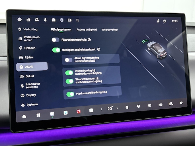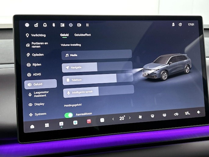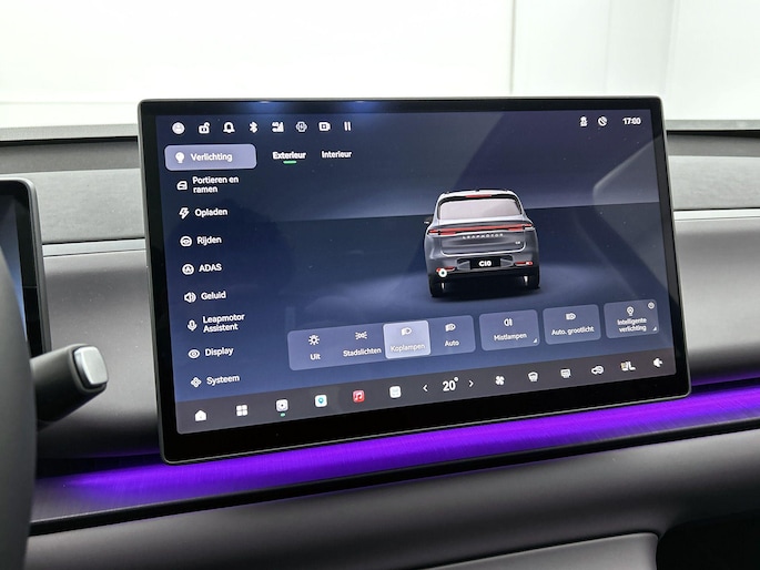 Natuurlijk brengt het digitale dashboard alle ritinformatie perfect in beeld. Maar ook communicatie, navigatie en tal van andere functies zijn permanent te volgen. De 360 graden camera op deze auto biedt u een volledig, panoramisch zicht op de omgeving. Met adaptive cruise control houdt deze auto automatisch afstand tot uw voorligger. De conditie van deze auto is 24/7 inzichtelijk dankzij Connected Services. Voor de veiligheid op de weg is het goed dat u uw ogen op de weg kunt houden en uw handen aan het stuur. Want het audio-installatiesysteem, met DAB-ontvangst, en het navigatiesysteem bedient u vanaf het stuurwiel en met spraakbediening. Ook is de Leapmotor uitgerust met: achteropkomend verkeer waarschuwing, kruisend verkeer detectie, electronic climate control en draadloos opladen.