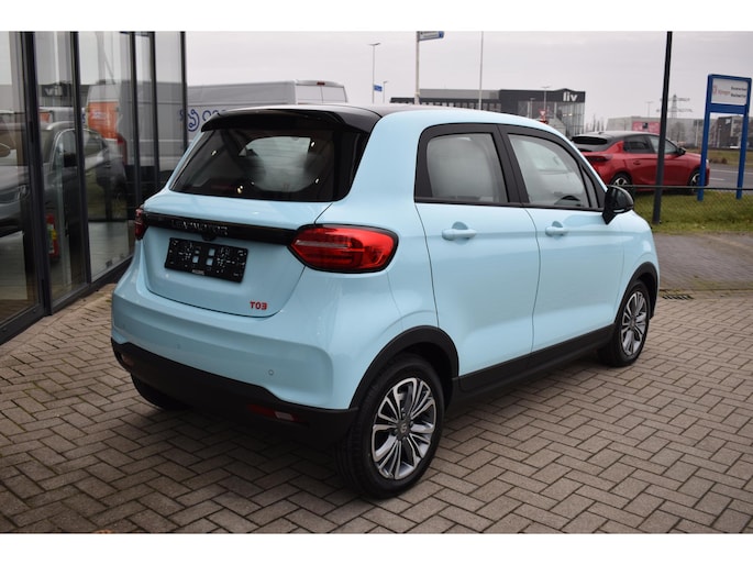 Hij levert uitstekende prestaties en doet dat met zorg voor het milieu. Maar tegelijk is de Leapmotor T03 ook gewoon een auto die u volop ruimte en comfort biedt. Nooit meer naar de pomp! De elektromotor opladen en rijden maar! Het gaat hier om een nieuwe auto, hij is nu direct leverbaar. Het glazen panoramadak zorgt voor een onovertroffen uitzicht. Bij de uitrusting van deze auto horen onder meer 15 inch lichtmetalen velgen en LED-dagrijverlichting.