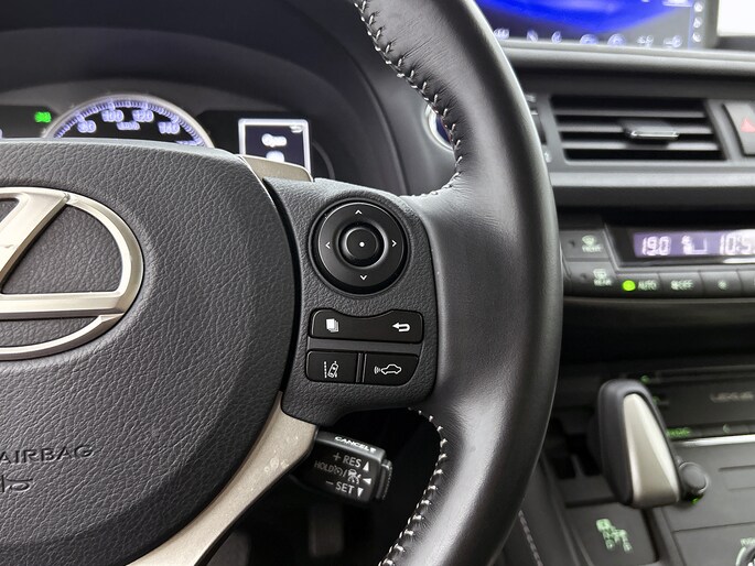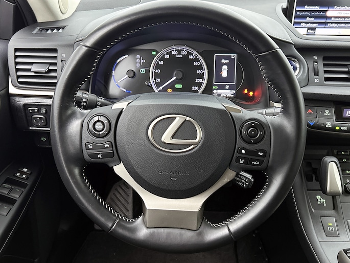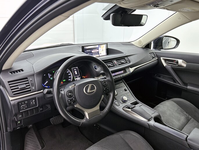 Met zijn inventieve techniek is de hybride Lexus CT tegelijk comfortabel en zuinig met brandstof. Zuinig, slim en milieuverantwoord! Deze hybride auto combineert een verbrandingsmotor en een elektromotor: voordelig rijden en gunstig in onderhoud. Met het lederen interieur ervaar je direct het gevoel van luxe en comfort. Mooi om te zien en heerlijk om in te zitten zijn de sportstoelen, die je onderweg optimale ondersteuning geven. Natuurlijk behoren 16 inch lichtmetalen velgen, LED koplampen, warmtewerend glas, dakspoiler, in delen neerklapbare achterbank en LED-achterlichten ook tot de uitrusting van deze complete auto.