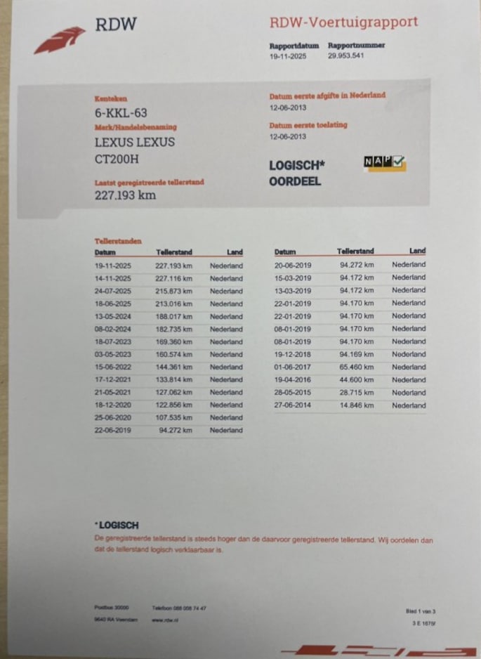 Kilometerstand gecontroleerd