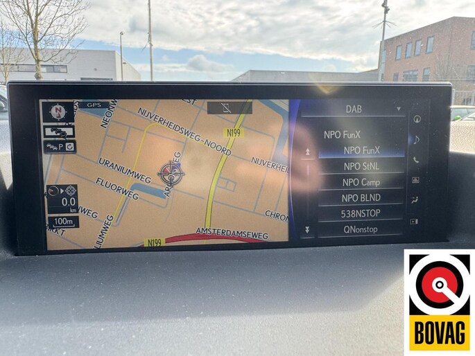 De achteruitrijcamera laat duidelijk zien hoeveel ruimte u nog heeft bij het inparkeren. Adaptive cruise control is veilig en comfortabel. De snelheidsregelaar houdt automatisch afstand tot het voertuig dat voor u rijdt. Spraakbediening herkent uw stem en voert opdrachten uit terwijl u beide handen aan het stuur houdt. Je weet altijd waar je moet zijn, dankzij het full map navigatiesysteem. De kans op een kop-staart botsing wordt sterk gereduceerd door het systeem van achteropkomend verkeer waarschuwing. De uitrusting van deze Lexus is met electronic climate control, DAB ontvangst, regensensor, keyless entry, dvd-systeem en automatisch dimmende binnenspiegel behoorlijk compleet.