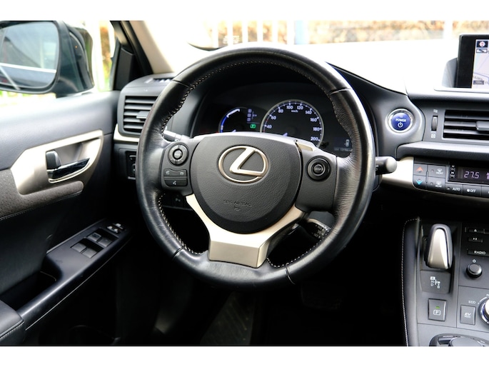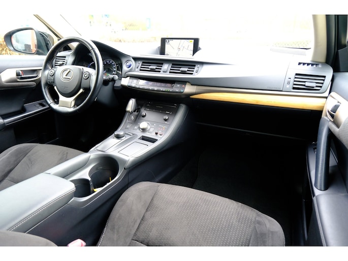 Naast handmatige bediening kunt u belangrijke functies met uw stem bedienen dankzij de ingebouwde spraakbediening. Van A naar B zonder omwegen: altijd uw eigen navigatiesysteem aan boord! Aan boord van deze Lexus CT is een achteropkomend verkeer waarschuwing voor extra veiligheid. De electronic climate control zorgt onder alle omstandigheden voor een prettige temperatuur. Achter het stuur van deze Lexus bent u niet alleen. De auto kijkt als het ware met u mee tijdens de rit. De regensensor schakelt de ruitenwissers in als het nodig is en de automatisch inschakelbare verlichting doet de lichten voor u aan. U bent in deze Lexus ook voorzien van cruise control, lederen stuur, centrale deurvergrendeling met afstandsbediening en boordcomputer.